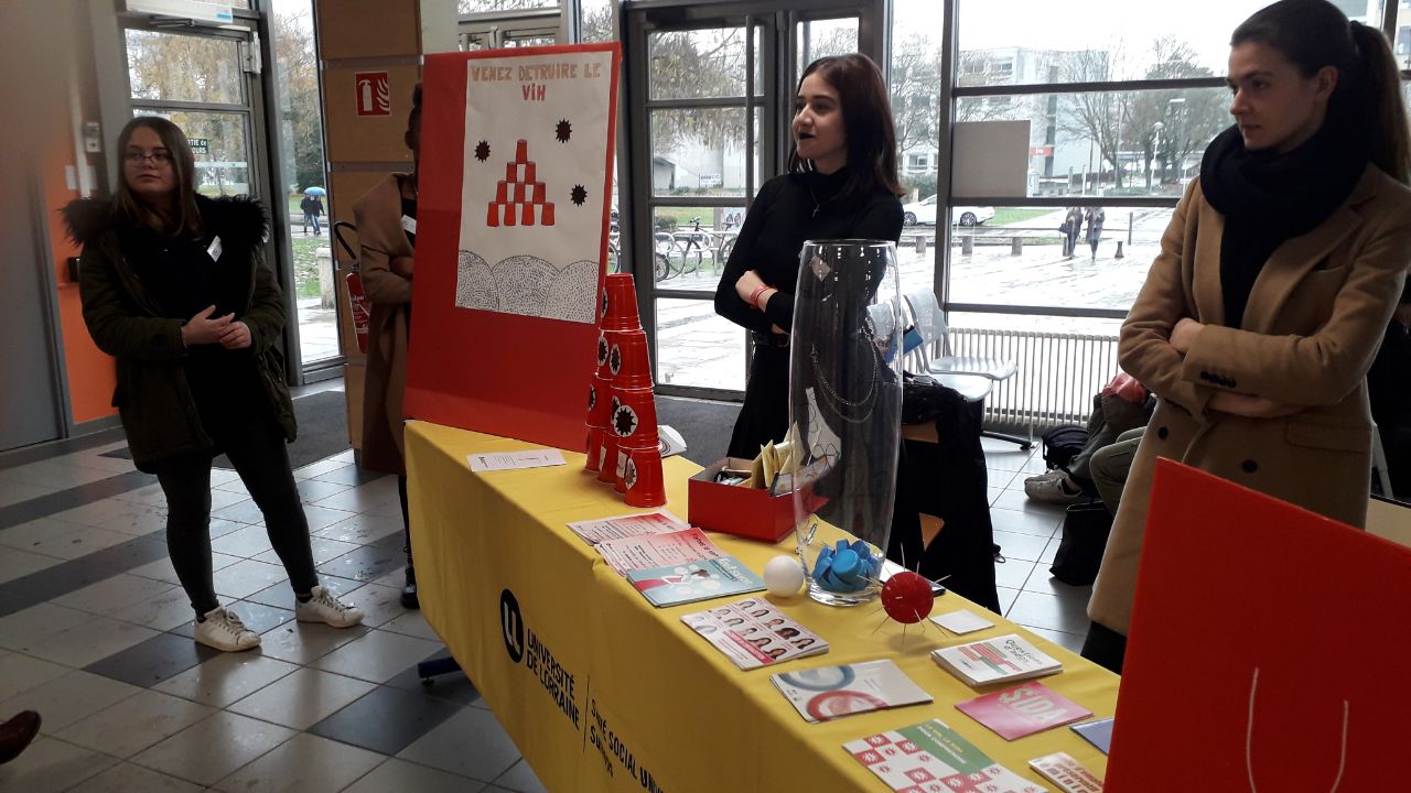 Cette année 2019 la journée mondiale d'action du SIDA s'est déroulée sur les campus de Bridoux le jeudi 28 novembre 2019 et dans les UFR, la BU et l'IUT de Metz le vendredi 29 novembre 2019.