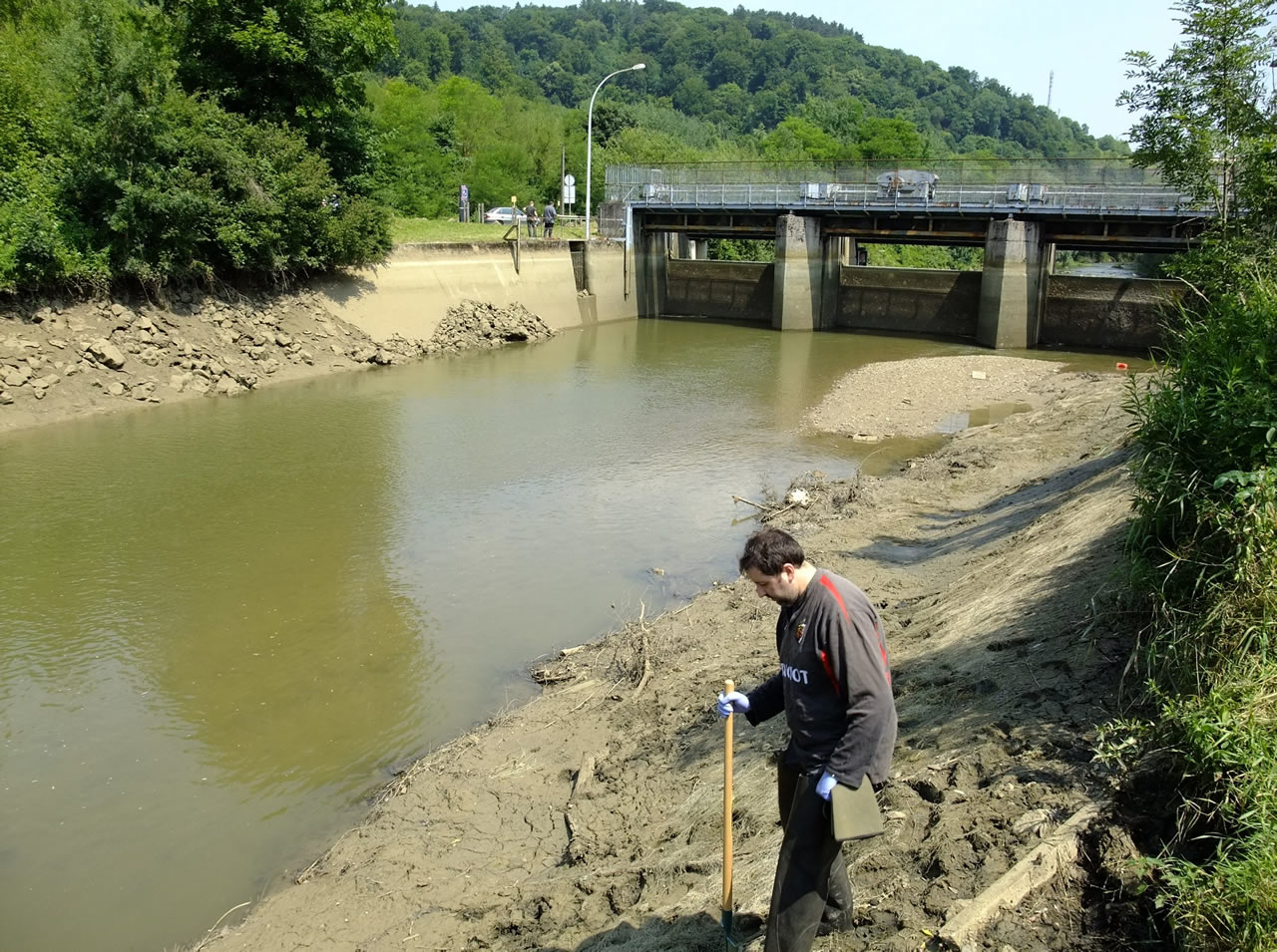 Pour prendre les bonnes décisions, il est donc crucial de comprendre dans quelle mesure les sédiments fixent les contaminants, et comment ceux-ci sont libérés lorsque le cours d'eau se réveille. « Des épisodes de crues intenses nous offriraient l'occasion d'évaluer l'impact d'un évènement similaire provoqué par la suppression d'un barrage » suggère Benoît Losson. C'est dans ce but que les géographes arpentent les rives de l'Orne en procédant à des mesures topographiques et hydrologiques. La cartographie 3D du lit de la rivière établie durant la période estivale sera comparée à celle qui suivra les crues hivernales. Conjointement, les chercheurs du laboratoire GéoRessources, du Laboratoire Interdisciplinaire des Environnements Continentaux (LIEC), du Centre de Recherches Pétrographiques et Géochimiques (CRPG) et du Laboratoire de Chimie, Physique et Microbiologie pour l'Environnement (LCPME) effectuent des prélèvements d’eaux, de sédiments et de matières en suspensions, afin d’identifier les caractéristiques géochimiques et microbiologiques des différents compartiments et identifier les micropolluants présents. Tous les chercheurs sont membres de la Zone Atelier du bassin de la Moselle (ZAM).