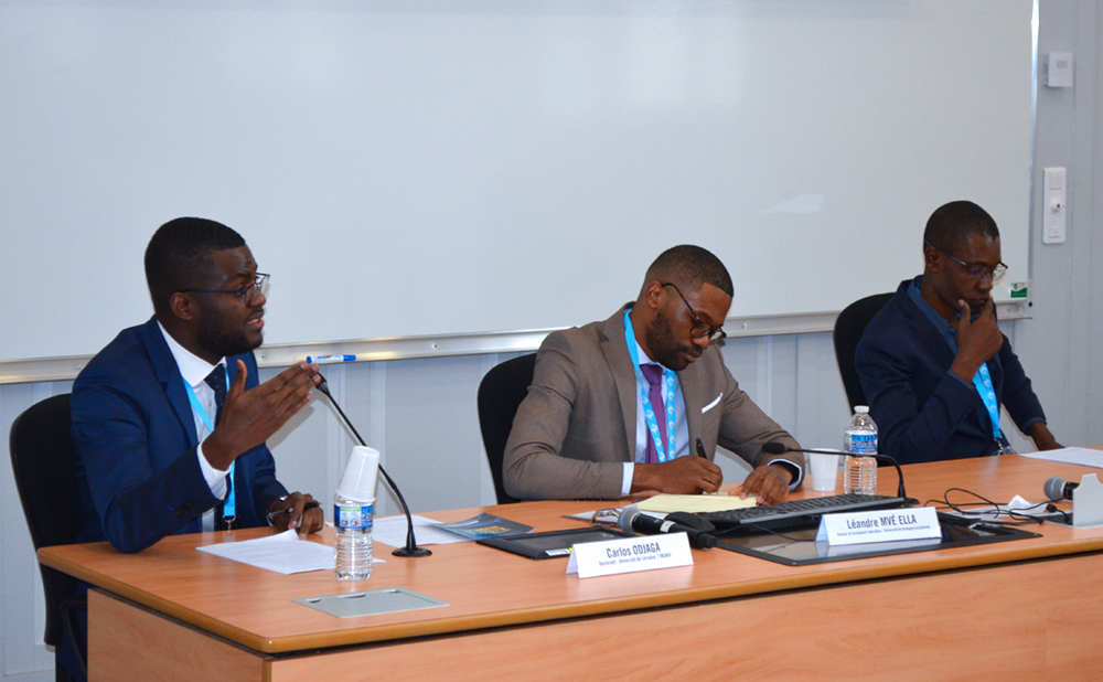 Photo 4 : Carlos ODJAGA, doctorant IRENEE ; Léandre MVÉ ELLA, Docteur et Enseignant-chercheur, Université de Bretagne occidentale ; Yves-Alain KOUMBA, doctorant IRENEE
