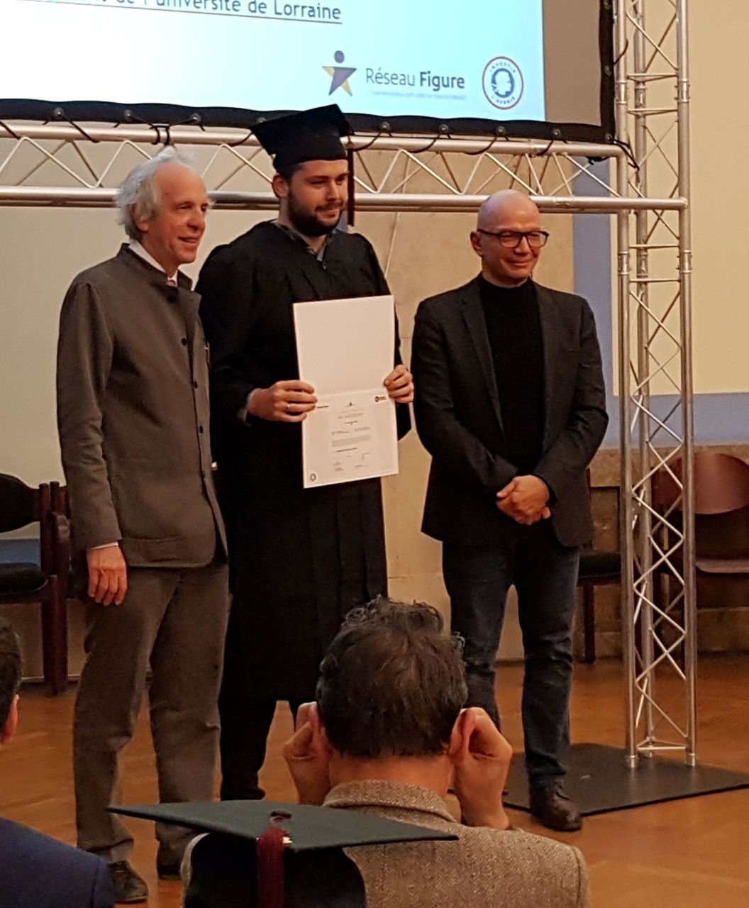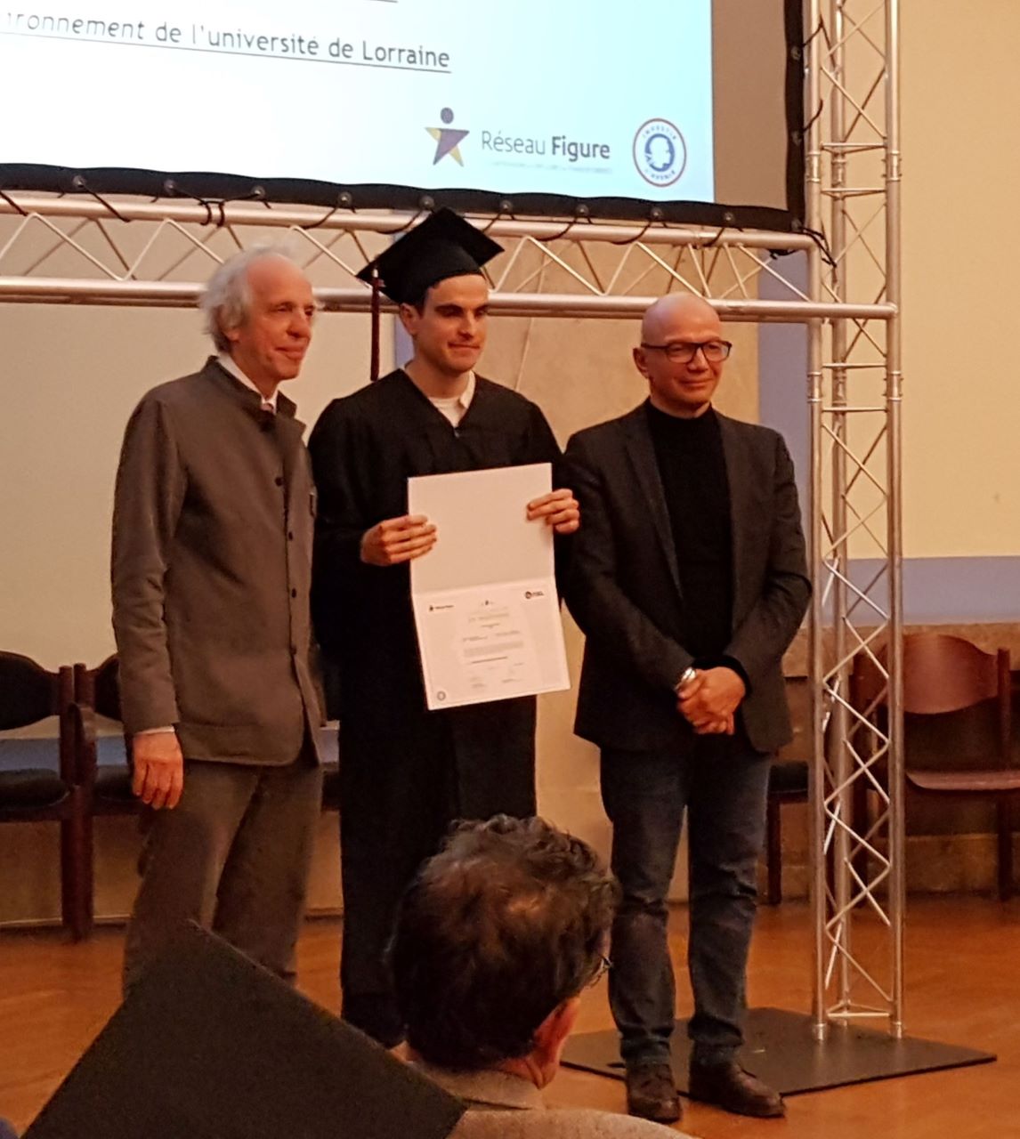 La remise des labels a eu lieu à Strasbourg le 21 novembre 2019 lors de l’Assemblée Générale (AG) du réseau Figure (« Formation à l’Ingénierie par des Universités de Recherche »). Figure est le réseau national coopératif d’universités autonomes proposant des CMI (http://reseau-figure.fr/) auquel l’Université de Lorraine adhère. Cette année, au niveau national, 174 étudiants ont reçu un label bien mérité après cinq années de formation intensive, et 86 étaient présents à Strasbourg pour le recevoir des mains d’Alain Beretz, ancien président de l’Université de Strasbourg et parrain de cette promotion 2019, et de Lamine Boubakar, président du réseau Figure.