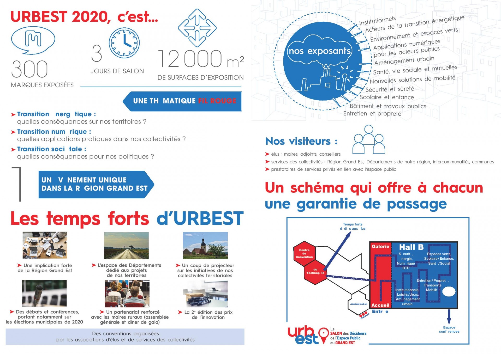 URBEST Grand Est est un salon entièrement dédié à l’espace public, attentif à la diversité des besoins et sachant répondre aux spécificités et aux exigences de tous les contextes, qu’il s’agisse d’environnement urbain ou d’espace rural. Avec près de 300 marques représentées sur 12 000 m² d’exposition, URBEST est tourné vers l’information des responsables, et au développement des échanges commerciaux entre décideurs et fournisseurs de l’espace public.