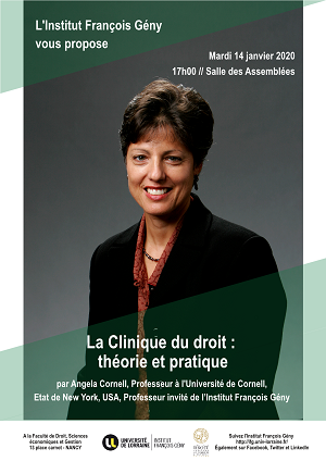 Madame Angela Cornell, Professeur à l'Université de Cornell, Etat de New York, USA, en sa qualité de Professeur invité à l’IFG sur contingent scientifique, donnera une conférence ouverte à tout public intéressé (enseignants-chercheurs, doctorants, étudiants) sur le thème : La Clinique du droit : théorie et pratique.