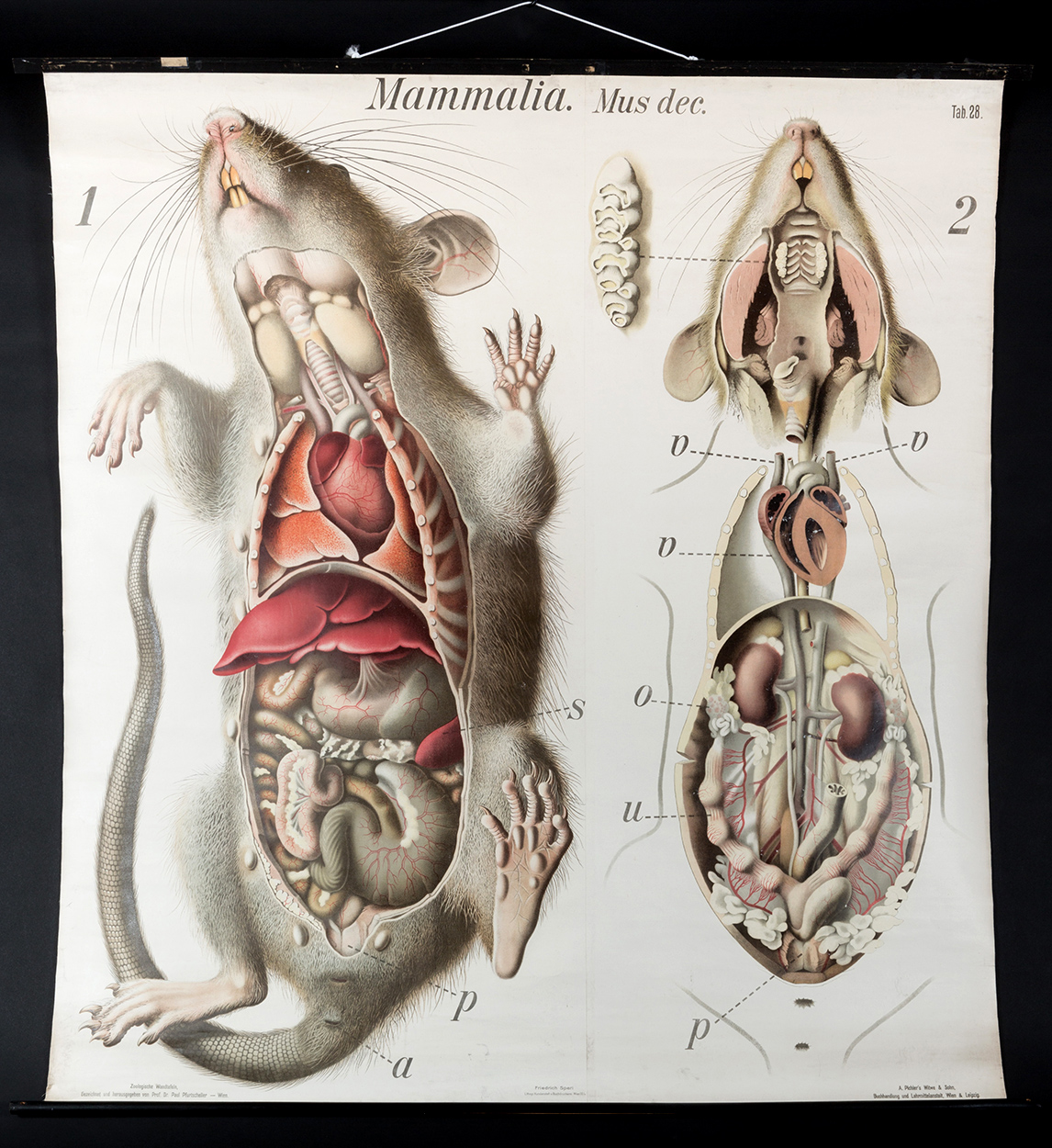 Objet 13/24 : Anatomie du rat brun, planche éducative allemande illustrée par le professeur Paul Pfurtscheller (1855-1927).