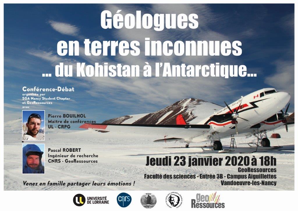Pierre BOUILHOL, Maître de conférences, CRPG, viendra parler du Kohistan (Pakistan) et Pascal ROBERT, Ingénieur de recherche CNRS à GeoRessources nous racontera sa mission en Antarctique.