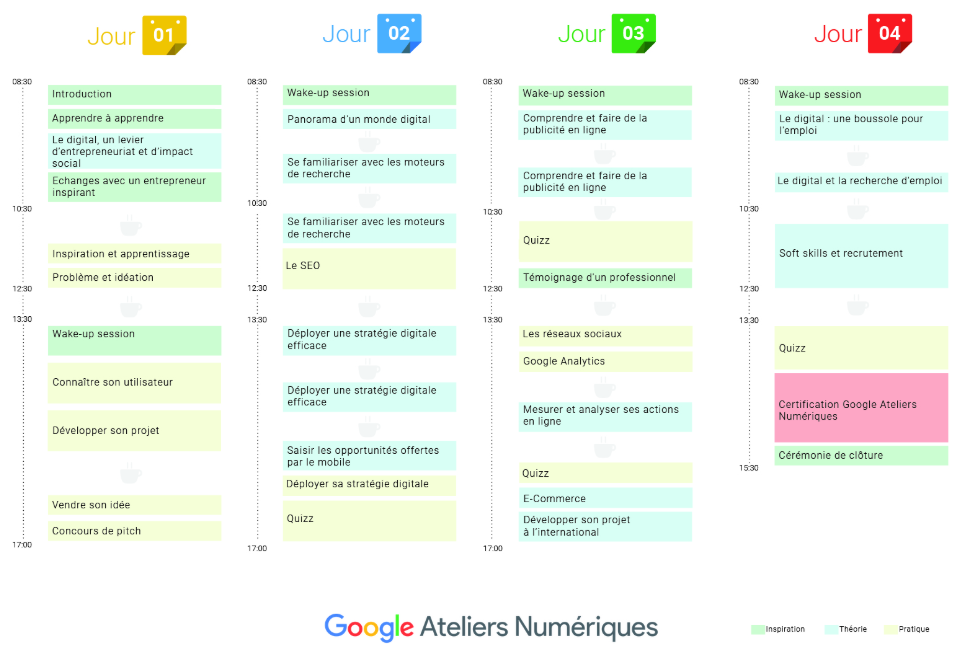 Délivrée par des experts, Les Ateliers Numériques, c’est une formation gratuite et certifiante aux fondamentaux du digital. Construite sur des modules théoriques et pratiques, la formation en présentiel, initie les étudiants aux compétences clés pour évoluer efficacement dans un monde digital.