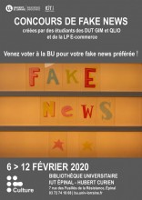 La bibliothèque universitaire de l'IUT Épinal-Hubert Curien invite les étudiants et le personnel à venir découvrir et voter pour des fake news créées par des étudiants des DUT GIM et QLIO et de la LP E-commerce.