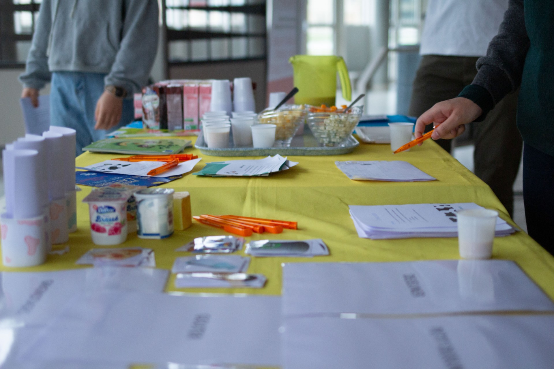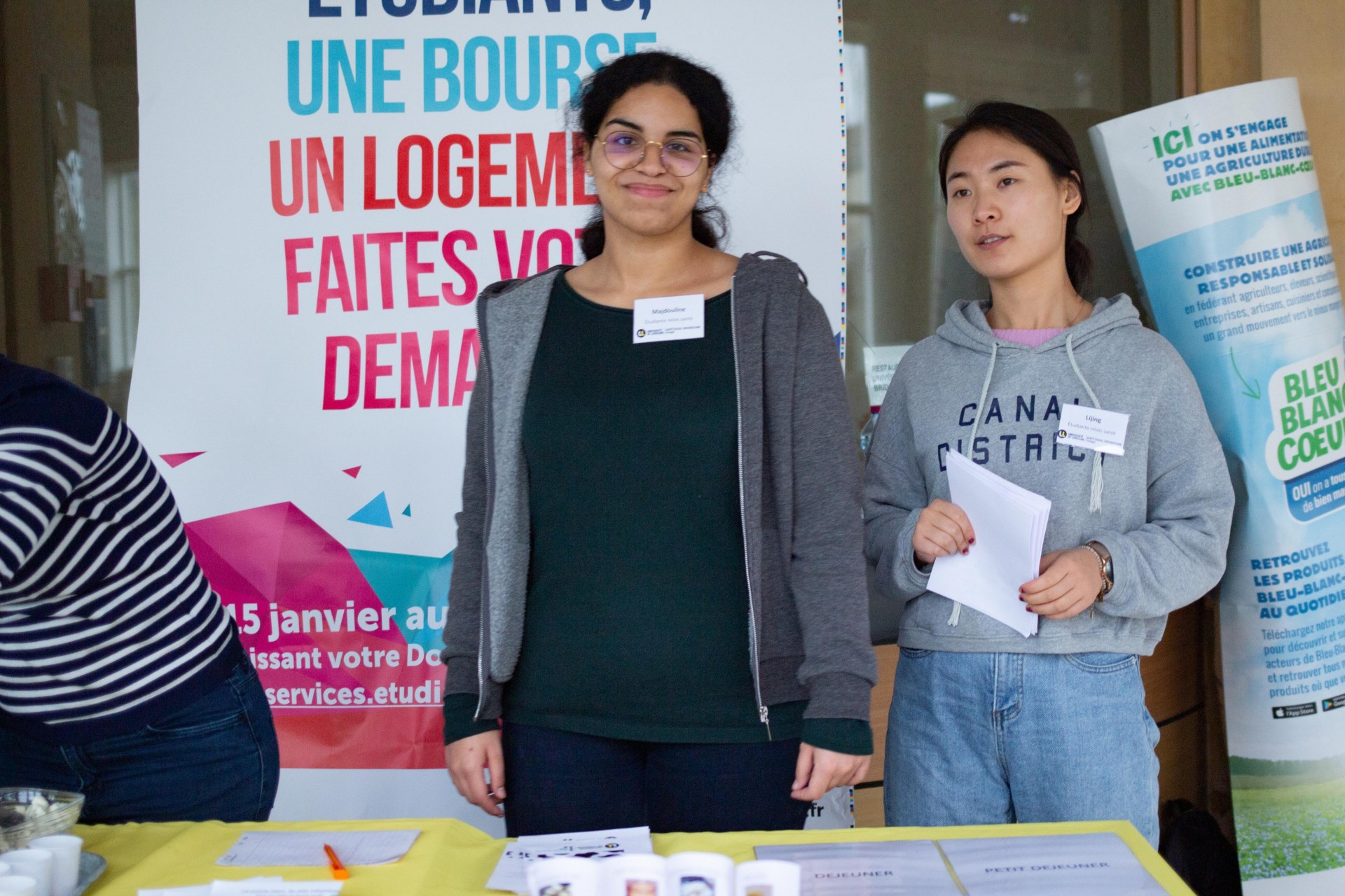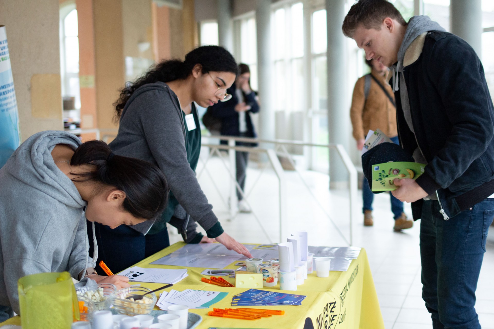 Ces actions ont été réalisées en partenariat avec le CROUS qui offrait à déguster des dés de gouda, de chèvre, du fromage blanc sucré, des smoothies et de la faisselle salée (Bibelekäse).