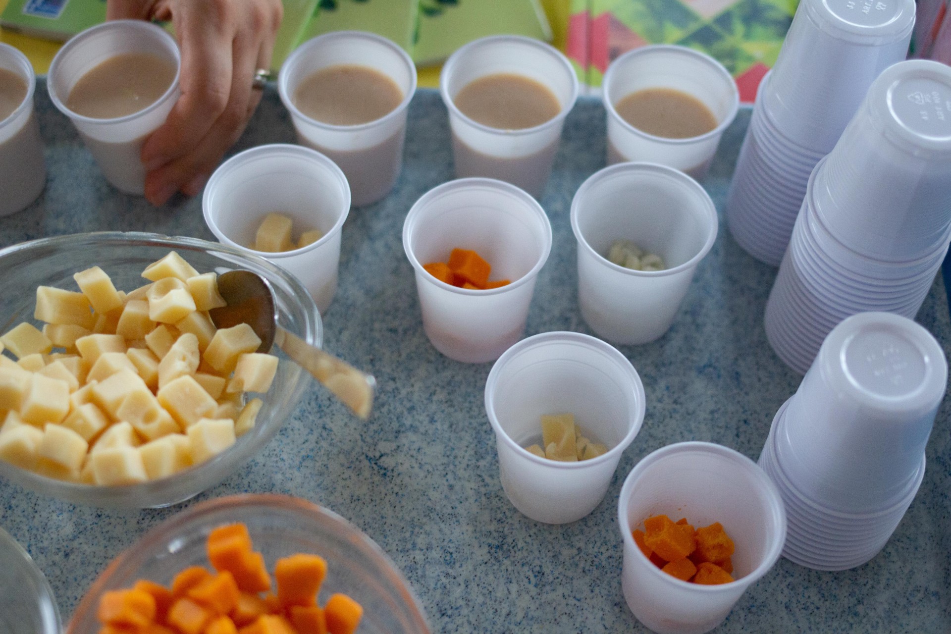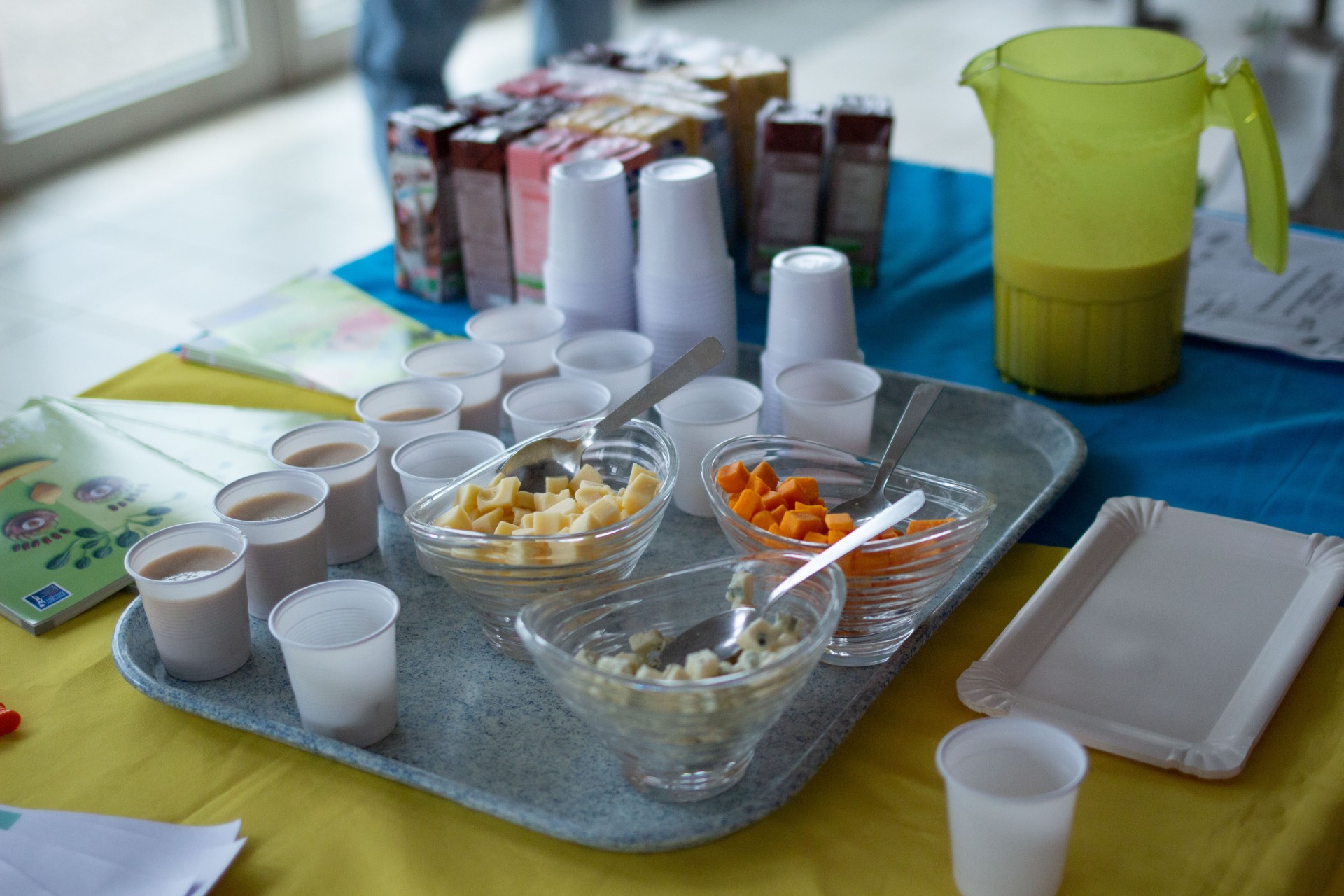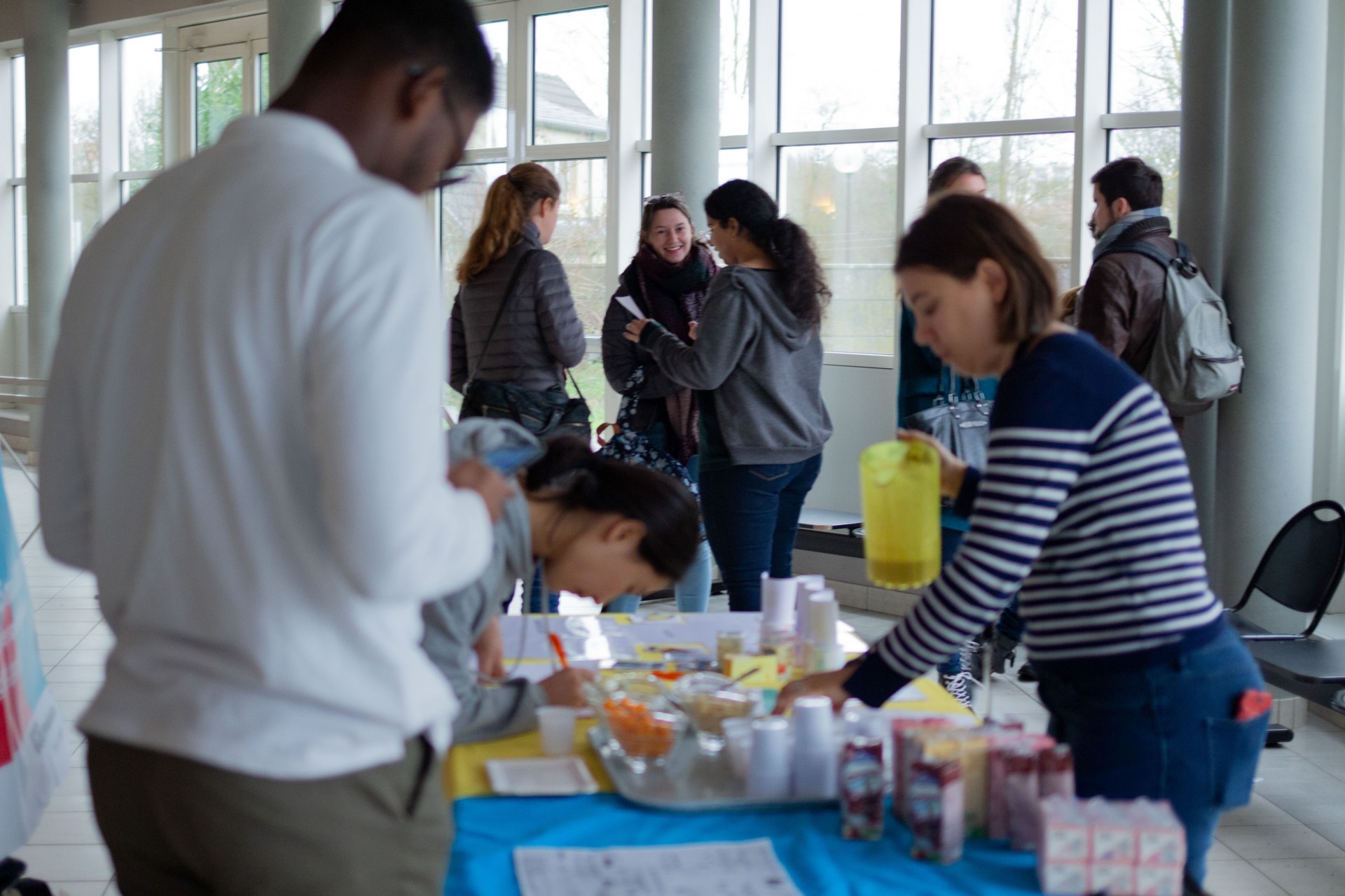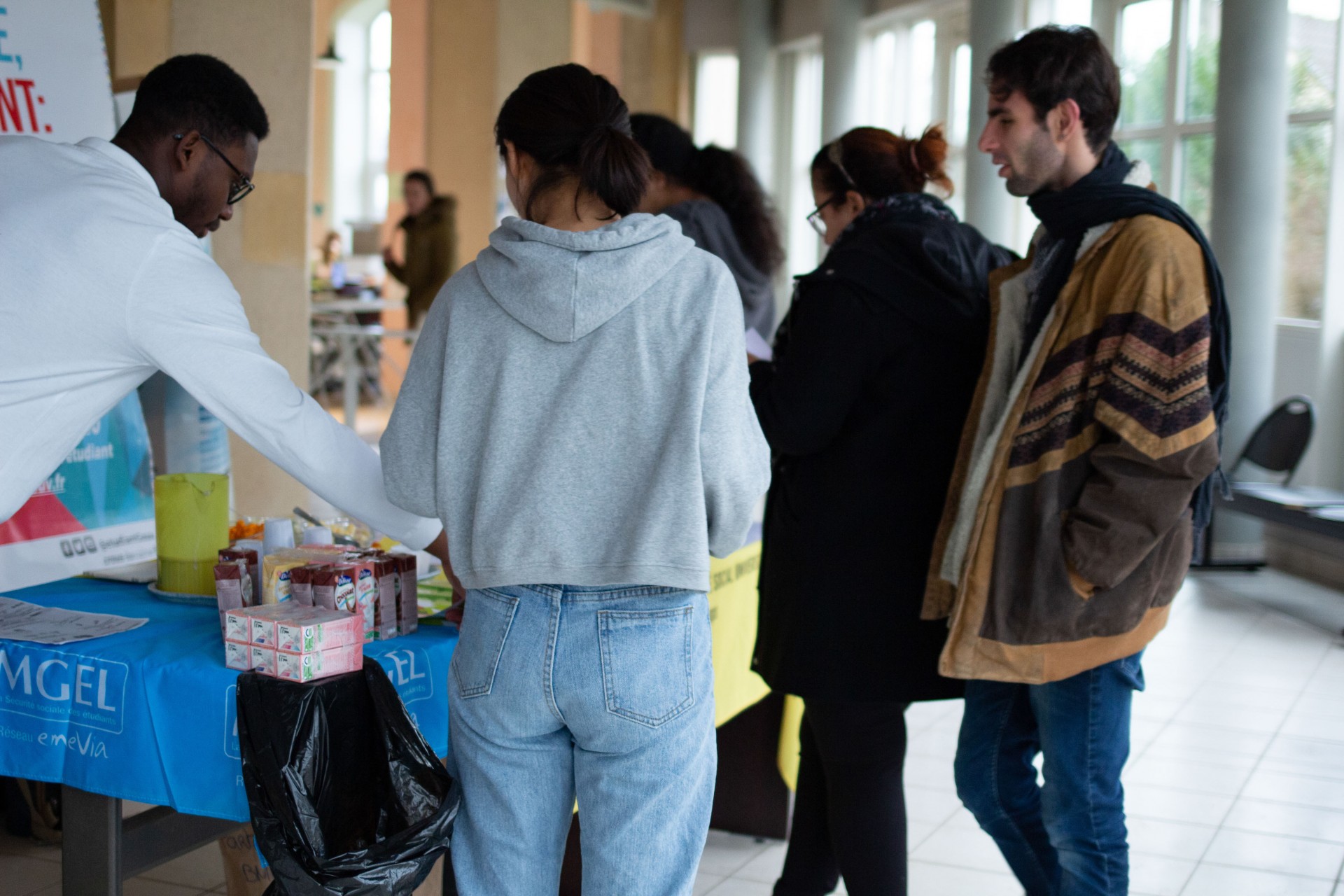 Ces actions ont été réalisées en partenariat avec le CROUS qui offrait à déguster des dés de gouda, de chèvre, du fromage blanc sucré, des smoothies et de la faisselle salée (Bibelekäse).