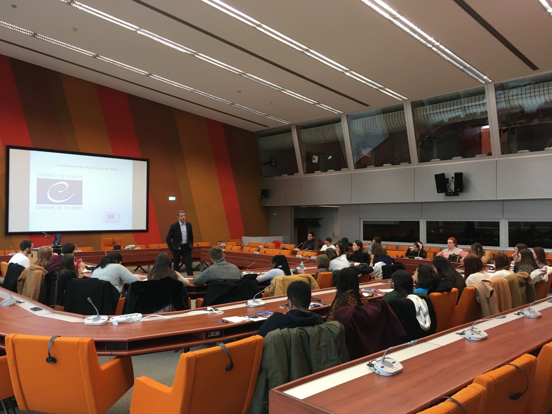 Le 14 janvier 2020, les Master VSOC (Master Veille stratégique et Organisation des Connaissances) et SCC (Stratégie et Conseil en Communication) se sont rendus au Conseil de l’Europe (CoE) pour assister à 2 conférences organisées spécifiquement pour eux sur l’IA et l'éthique, et sur la gestion des risques au sein du CoE, et visiter le PC sécurité centralisé.
