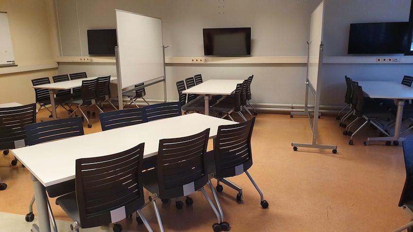 - la création d’une nouvelle grande salle pédagogique disposant de 22 postes informatiques et d’un espace de travail collaboratif configurable de 36 places avec moniteurs 43 pouces et tableaux pivotants,