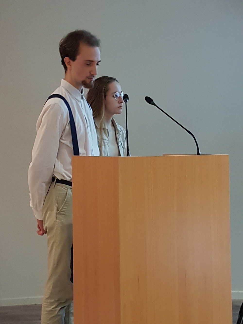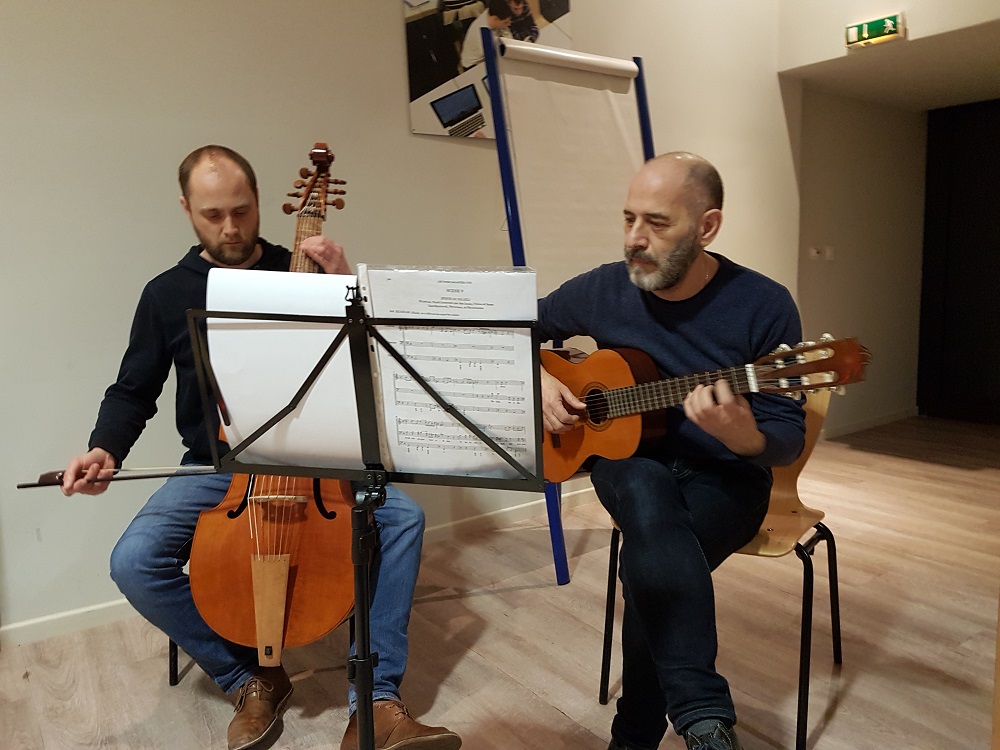Plusieurs étudiants ont ensuite offert une lecture de quelques textes poétiques de Laura Fusco, offrant à entendre autant de manières différentes d’interpréter son œuvre, toutes très touchantes. C’est Manon Albizzati, l’une des Ophélie de Laura Fusco - accompagnée par la voix de René Russo et par la viole de gambe d’Olivier Varcin -, qui a mis en voix quelques poèmes du recueil de Laura Fusco en cours de traduction par nos étudiants. Puis Sofia Nouasri, David Jacquot et Yvan Thomas, trois étudiants du DU Etudes Théâtrales dirigé par Yannick Hoffert, ont quant à eux créé une lecture-spectacle de plusieurs textes tirés du recueil Limbo, sous la direction de Denis Milos. Enfin trois étudiantes d’Italien et de Bilangue Biculture, Wiam Haj Mohamed, Marlies Schafer et Apolline Guérin, accompagnées par la flûte de cette dernière, ont repris quelques textes du recueil inédit auxquels elles ont associé quelques poèmes de leur camarade Gloria D’Angelo.