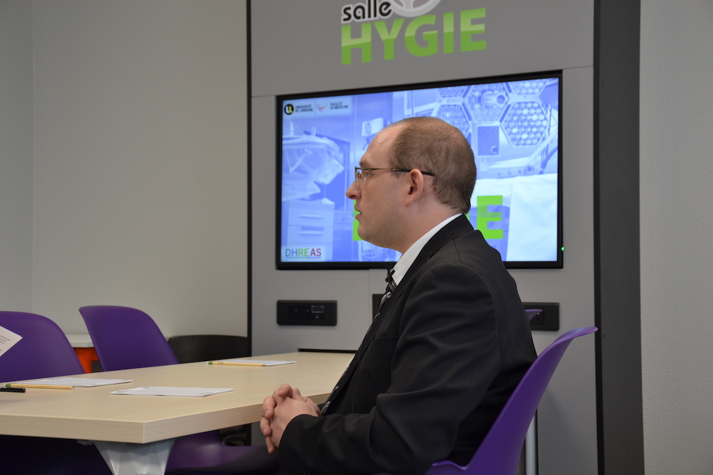C’est dans la toute nouvelle salle d’enseignement « Hygie » qu’Arnaud Florentin, maître de conférences des universités, praticien hospitalier et responsable du DRHEAS, nous reçoit.