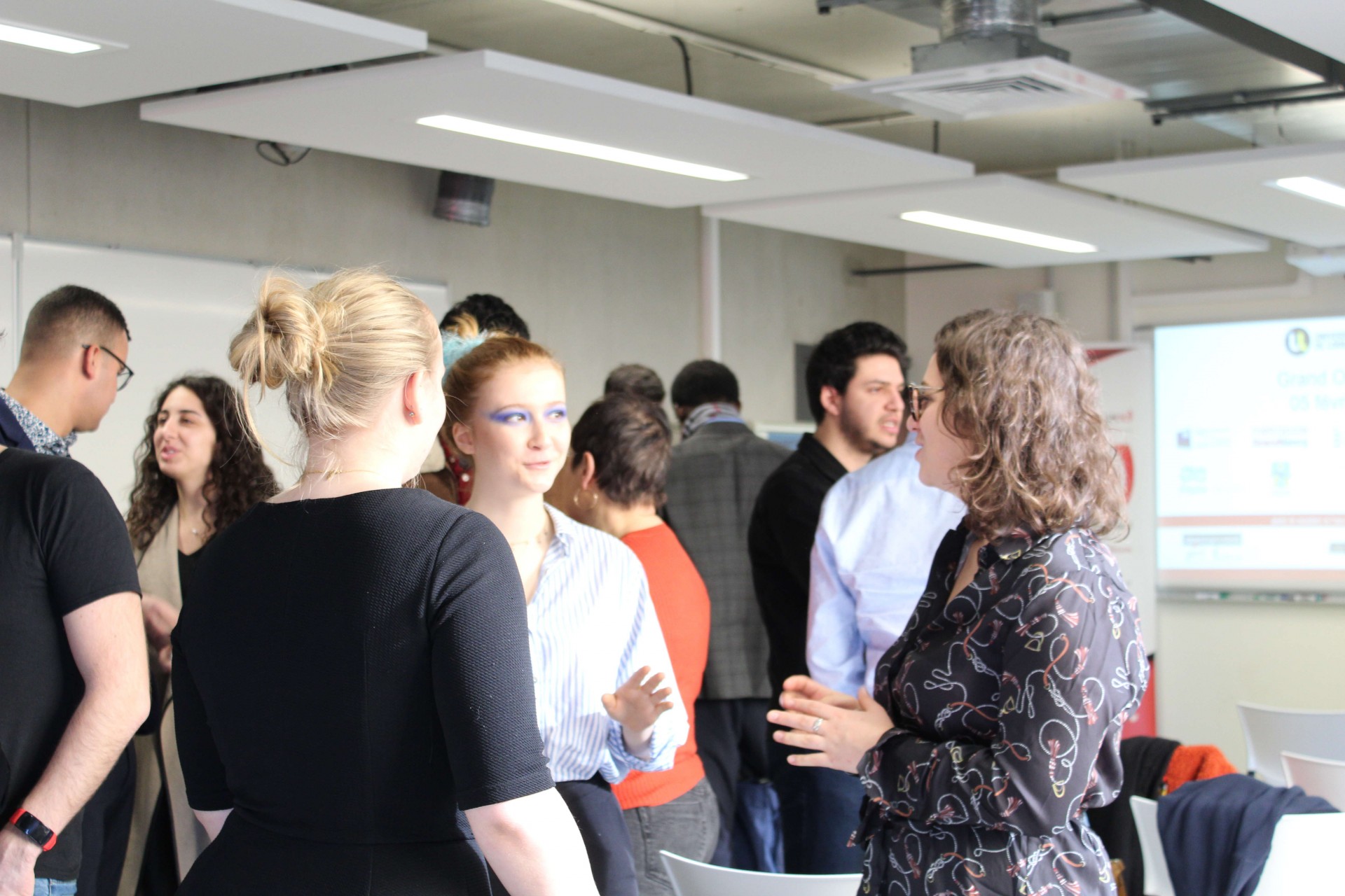 En analysant les interrogations du public, les étudiants-entrepreneurs pouvaient ainsi déceler les points forts et les points de compréhension à améliorer dans leurs projets. Un premier exercice permettant de se confronter aux autres, de se questionner et d’interagir avec des professionnels et des paires autour d’un moment convivialité après les présentations.