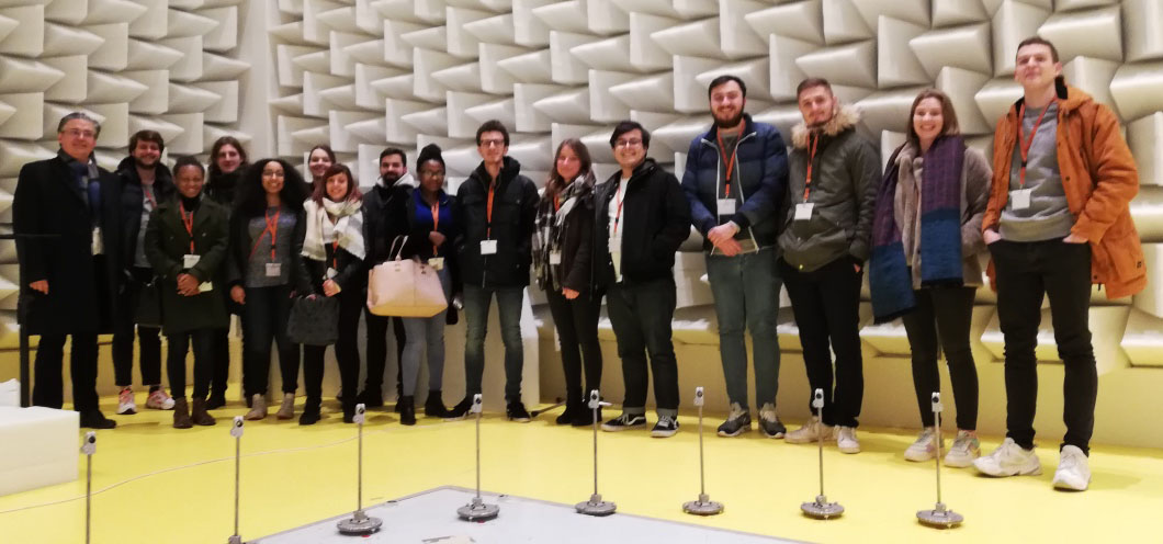 - les travaux menés en acoustique sur les nuisances sonores, avec la visite de la chambre sourde (en photo)