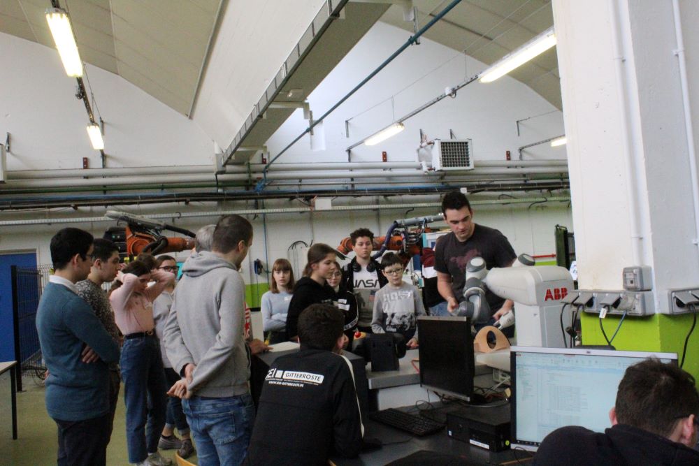 - la visite interactive d’un espace d’enseignement supérieur en robotique industrielle, la manipulation et la programmation simplifiée d’un Cobot (robot de collaboration comme le Yumi de l’entreprise ABB) et l’immersion avec des lunettes de réalité virtuelle dans une cellule robotisée virtuelle également ; le tout présenté par les étudiants de la Licence professionnelle en robotique de l’IUT de Metz ;