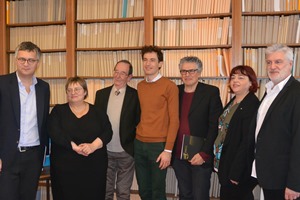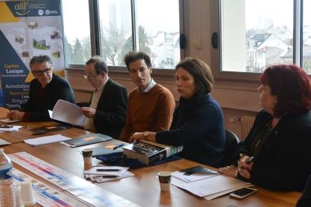 Afin de marquer officiellement le lancement du travail à ce futur dictionnaire des constructions du verbe au XVIe siècle, une rencontre a réuni jeudi 27 février 2020 Claire Simonnet et Denis Schaming, représentants de la Métropole du Grand Nancy, Edwige Helmer-Laurent, déléguée régionale du CNRS Centre-Est, Claude Arcipreste, directrice de cabinet de l’Université de Lorraine, Alex Boulton, directeur de l'ATILF et professeur à l'Université de Lorraine et Yan Greub, directeur adjoint de l’ATILF et chargé de recherche CNRS, autour de l’équipe du dictionnaire, composée de Sylvie Bazin-Tacchella, professeur de l'Université de Lorraine responsable du projet, Bernard Combettes, référent scientifique et rédacteur et professeur émerite de l'Université de Lorraine, Jean-Michel Jézéquel, rédacteur et ingénieur de recherches CNRS et doctorant à la faculté de Sorbonne Université, et Gilles Souvay, ingénieur de recherche CNRS en charge de la programmation informatique. La réunion en salle P. Imbs a été suivie d’une visite - site linguistique du centre de documentation Michel Dinet. Par son soutien fort à l’élaboration de cette future ressource électronique, la Métropole du Grand Nancy souhaite aussi promouvoir le travail de recherche en linguistique d’un laboratoire qui est une "pépite" locale au rayonnement international.