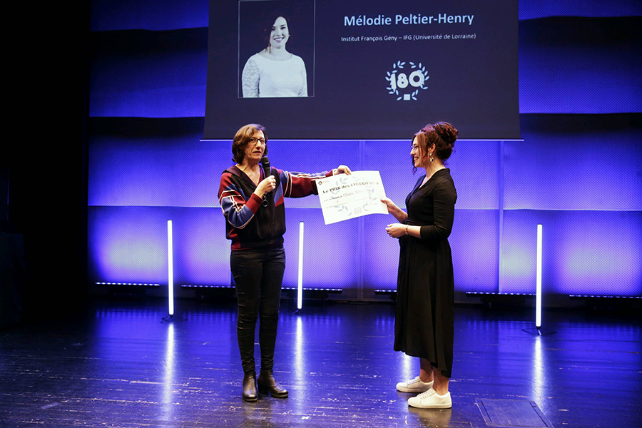 Mélodie Peltier-Henry, doctorante à l’Institut François Gény (Université de Lorraine) a remporté le prix des lycéens – retrouvez son portrait ici.
