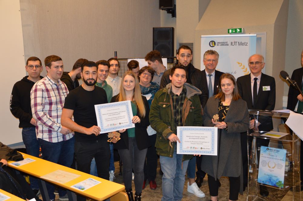 Chaque année des entreprises accueillent régulièrement des apprentis et des stagiaires afin de professionnaliser la formation. Dans le prolongement de ces nombreux partenariats, cette cérémonie a réuni monde de l’entreprise et université. Cette édition a consacré les liens noués entre l’IUT d’une part, et Arcelor Mittal, Demathieu et Bard, le Crédit Agricole de Lorraine et d’Alsace Vosges d’autre part.