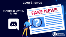 Dans le cadre d'un projet de communication, Mathias, Elliot, Arthur, Baptiste, et Abdelnaceur, cinq étudiants en licence en information et communication, ont décidé de sensibiliser un large public sur la question des Fake News. Une audioconférence ouverte à tous se déroulera le 28 avril 2020 à 17h00.