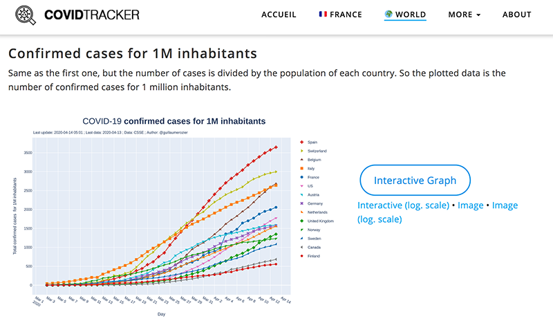 D’autre part, il permet d’étudier la pandémie au niveau mondial grâce à des graphiques présentant notamment les cas recensés de Covid-19 et les décès liés dans de nombreux pays en Europe, Amérique et Asie.