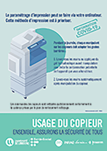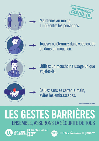 Afin de sensibiliser les agents sur l’importance des mesures sanitaires pour se protéger et protéger les autres, des visuels écran et des affiches ont été réalisés afin d’être disposés dans toutes les structures. Une série de fiches « conseils » sont également à disposition de tous les agents. Nous conseillons aussi de diffuser sur les écrans dynamiques, pour les structures qui en disposent, le