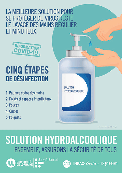 La DLI a ensuite mis en place une organisation logistique dédiée avec l’aide d’agents de la Faculté des Sciences et des Technologies (FST) et de l’IUT Nancy-Brabois pour parvenir à préparer plus de 2000 lignes de commandes dès la première semaine et poursuivre cet effort sur les prochains mois. Parallèlement des moyens de production interne ont été sollicités comme Polytech pour la fourniture de 2000 visières, l’IUT de Metz pour des crochets, ouvre porte, extenseur, l’imprimerie centrale et la PAO ont imprimé des étiquettes, affiches autocollantes et brochures ou la Faculté de pharmacie qui n’a cessé de produire des milliers de litres de solutions hydro-alcooliques depuis le début de la crise sanitaire pour les soignants et l’université, entre autres.