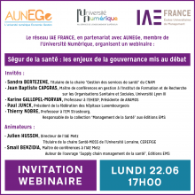 Afin d’alimenter le débat et d’identifier ce qui peut être “changé, voire bousculé aujourd’hui”, le réseau IAE FRANCE et l’AUNEGe organisent un webinaire sur les enjeux de la gouvernance des organisations de la santé et plus particulièrement de l’hôpital qu’il soit public ou privé.