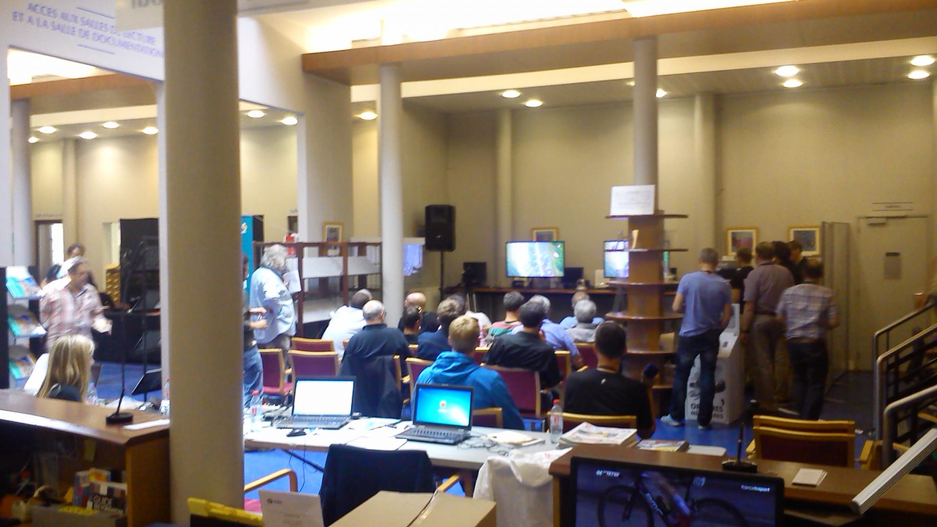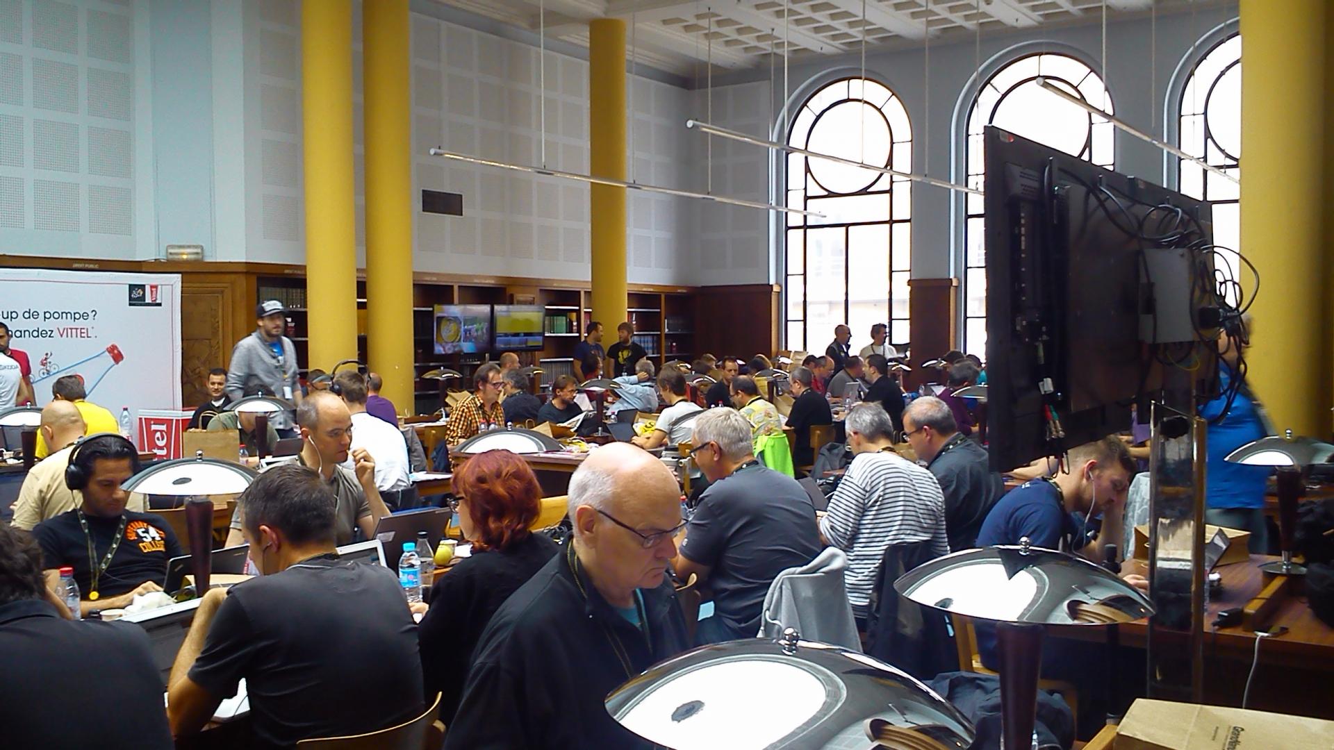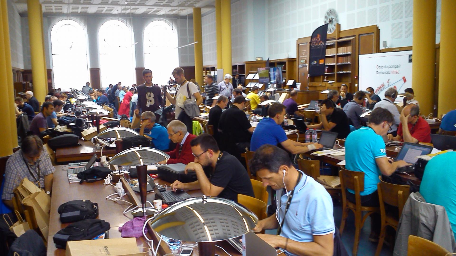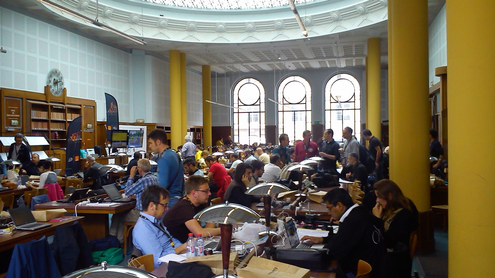 Grâce à ses locaux ouverts et spacieux, la BU Droit et Sciences économiques était au cœur de l’événement. 350 journalistes du monde entier se sont installés dans les salles de lecture. La Direction du Tour et la garde républicaine avaient pris place à l’étage supérieur, dans la Salle d’Honneur des universités. Durant cette journée, le bâtiment d’ordinaire très studieux du 11 Place Carnot a accueilli les coulisses et l’ambiance fébrile du troisième plus grand événement sportif mondial (après les Jeux Olympiques et la Coupe du Monde de football).