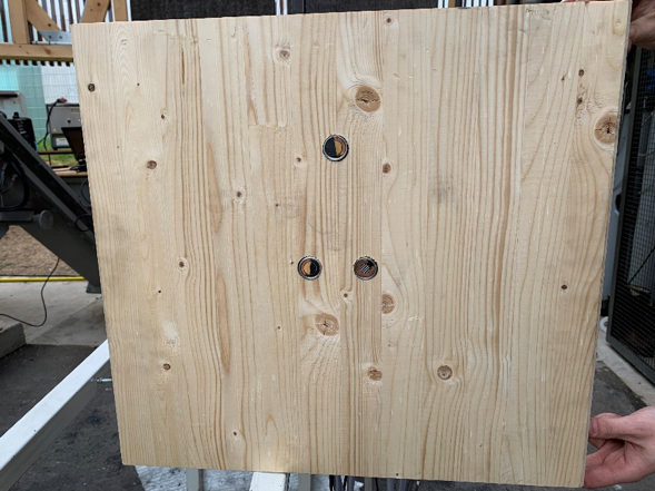 Cette expérimentation associe différents capteurs de température à la fois : elle utilise des mesures par thermocouples, dans l’épaisseur du bois, et de flux total et radiatif sur la face exposée au flux de chaleur. De plus, la température externe du panneau de bois est suivie dans le temps par de l’imagerie infrarouge.