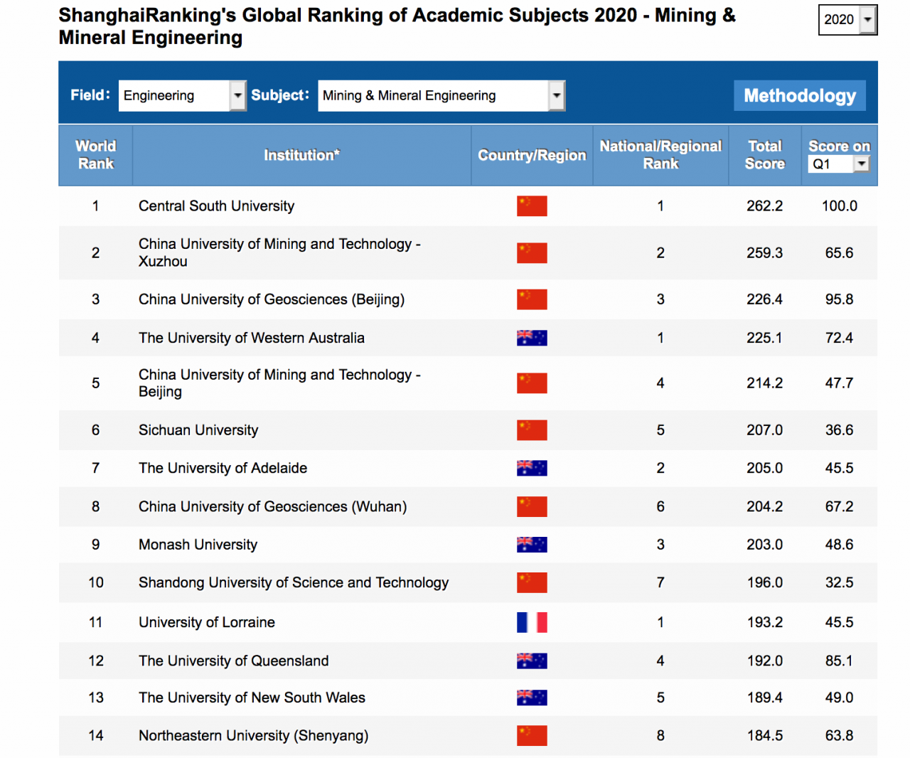 Elle est la quatrième université non chinoise après 4 Universités australiennes (Western Australia, Adelaide, Monasch) et juste devant Université de Queensland, Université avec laquelle le Laboratoire international (LIA) Sucre a été mis en place en 2019 grâce à l’activité du LabEx RESSOURCES21 et des laboratoires Otelo . Sucre est une collaboration entre l’Université de Lorraine et le Sustainable Minerals Institute (SMI) à l'Université du Queensland, qui couvre tous les domaines de l’exploration jusqu’à l’intégration territoriale et pour laquelle un dossier d’IRP (International Research Partnership) est soumis.