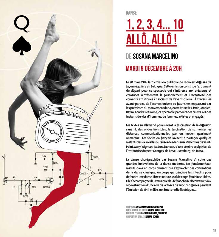Le 28 mars 1914, la 1ère émission publique de radio est diffusée de façon régulière en Belgique. Cette émission constitue l’argument de départ pour ce spectacle qui s’intéresse aux créateurs et créatrices représentant le foisonnement et l'inventivité des courants artistiques et sociaux de l’avant-guerre. A travers les avant-gardes, de l'expressionisme au futurisme, en passant par les prémisses du mouvement dada, entre Bruxelles, Paris, Munich, Berlin, Londres et Rome, ce spectacle parcourt des œuvres et des instants de vies d'hommes, de femmes, artistes et engagés.