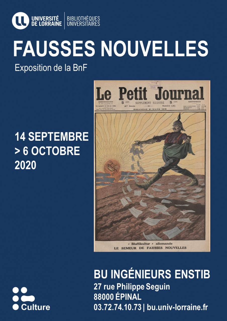 La bibliothèque ingénieurs ENSTIB vous invite à découvrir une exposition sur les fausses nouvelles, créée par le service de l'éducation artistique et culturelle de la BnF et le CLEMI.