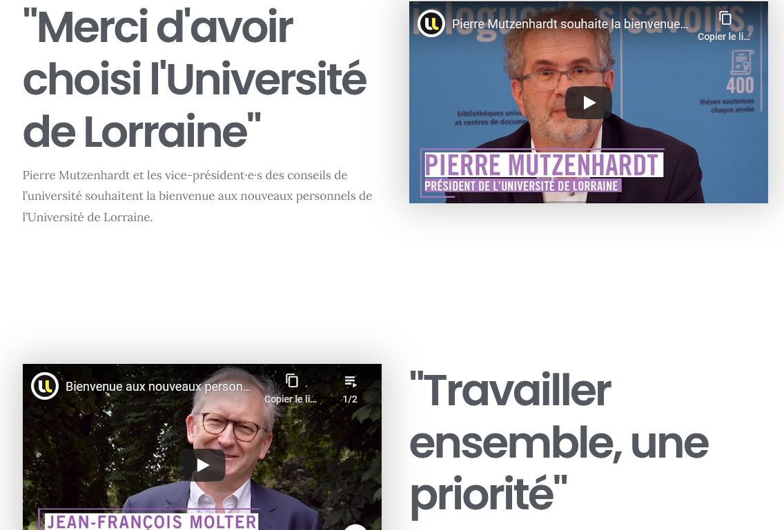 La journée d'accueil des nouveaux personnels, qui se déroule traditionnellement début septembre, n'a donc pas lieu cette année. Pour que les nouveaux personnels puissent disposer de toutes les informations nécessaires à leur bonne intégration (informations qui habituellement étaient transmises lors de l'événement ou qui figuraient dans le guide d'accueil qui leur était remis), un site web a été également créé. Présentation de l'établissement, mots de bienvenue du président et du directeur général des services en vidéo, informations RH, vie quotidienne... tout y est pour que leur arrivée à l'Université de Lorraine soit facilitée !