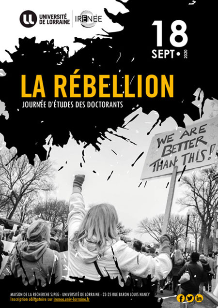 La traditionnelle journée d'études des doctorants de l'IRENEE a lieu cette année le 18 septembre 2020, à la Maison de la Recherche SJPEG de Nancy avec pour thématique actuelle "La rébellion".