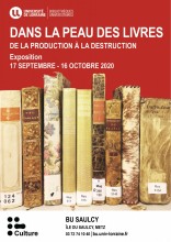 Un livre nous parle avant même qu’on ne l’ouvre. Longtemps c’était à l’acheteur de lui donner sa forme définitive par la reliure, selon son goût et ses moyens ; aujourd’hui, c’est l’éditeur qui fait ce travail, même si certains préfèrent toujours personnaliser leurs livres. Mais une fois relié, la vie du livre n’est pas toujours facile du fait des éléments ou des hommes. Les collections de la BU du Saulcy invitent à un parcours dans la vie des livres, de leur fabrication jusqu’à nous.