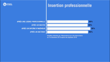 Près de 80 % des diplômés en emploi estiment par ailleurs que l’emploi qu’ils occupent est en adéquation avec le niveau et la spécialité du diplôme qu’ils ont obtenu.