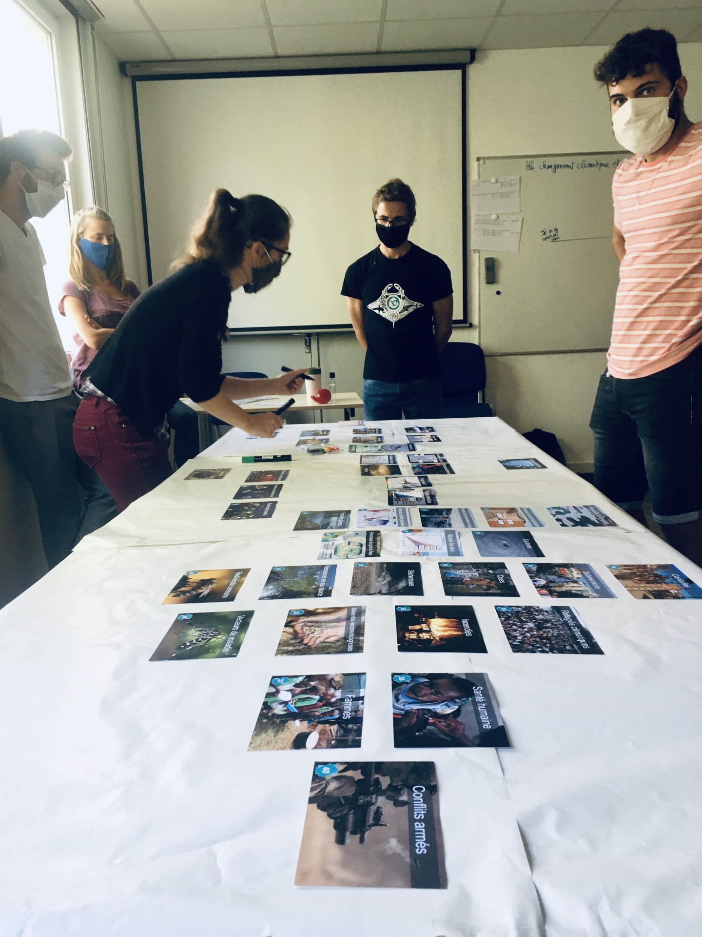 Cet atelier fût d’un grand intérêt autant pour sa partie pratique, la création de la fresque en positionnant l’une après l’autre les cartes en fonction de leur place dans le schéma « cause à effet » du dérèglement climatique, que pour sa partie discussion. Cette discussion a notamment permis aux élèves et enseignants de partager leurs émotions, quelles soient négatives, comme le fait de se sentir déprimé par le constat montré par la fresque, ou positives, comme l’envie d’en faire plus, suscitées par le constat que le dérèglement climatique ne sera freiné que lorsque les mentalités individuelles changeront et que ces mentalités feront suffisamment pression sur le modèle de vie actuel pour qu’il soit forcé de changer.