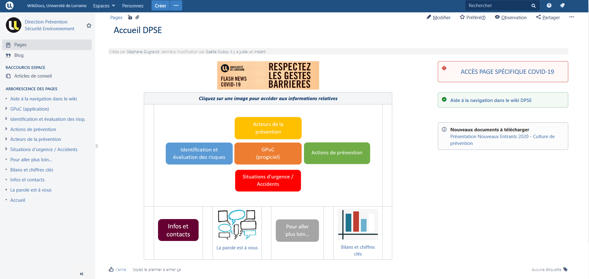 Vous cherchez des informations sur les consignes à respecter dans le cadre de la COVID-19 ? Vous souhaitez trouver un document en particulier pour faciliter vos demandes spécifiques en hygiène et sécurité ? Ou comprendre le rôle d’un assistant de prévention (AP) ou d’un guide Covid ? Vous trouverez la réponse à toutes ces questions sur le wikidocs de la Direction prévention sécurité environnement (DPSE) de l'Université de Lorraine.