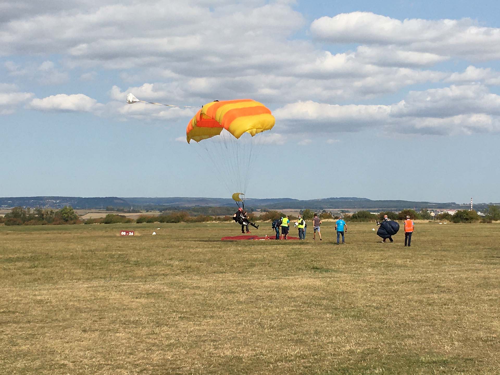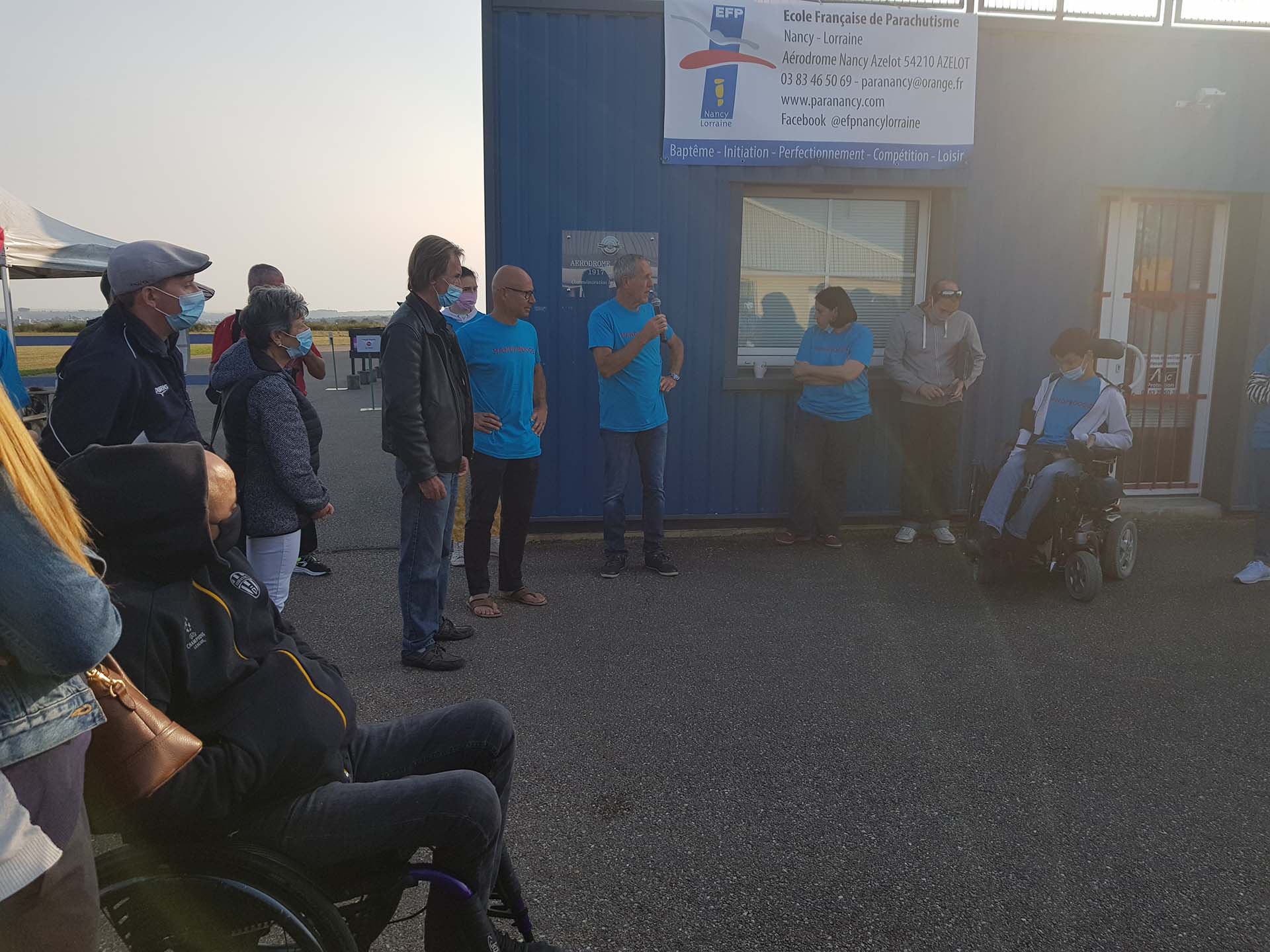 Le 12 septembre 2020, le projet Handi’Boogie a enfin pu avoir lieu à l’aérodrome d’Azelot. Le but de l’événement était de proposer à des personnes en situation de handicap de sauter en parachute pour la première fois et de découvrir les émotions qui accompagnent cette expérience inoubliable.