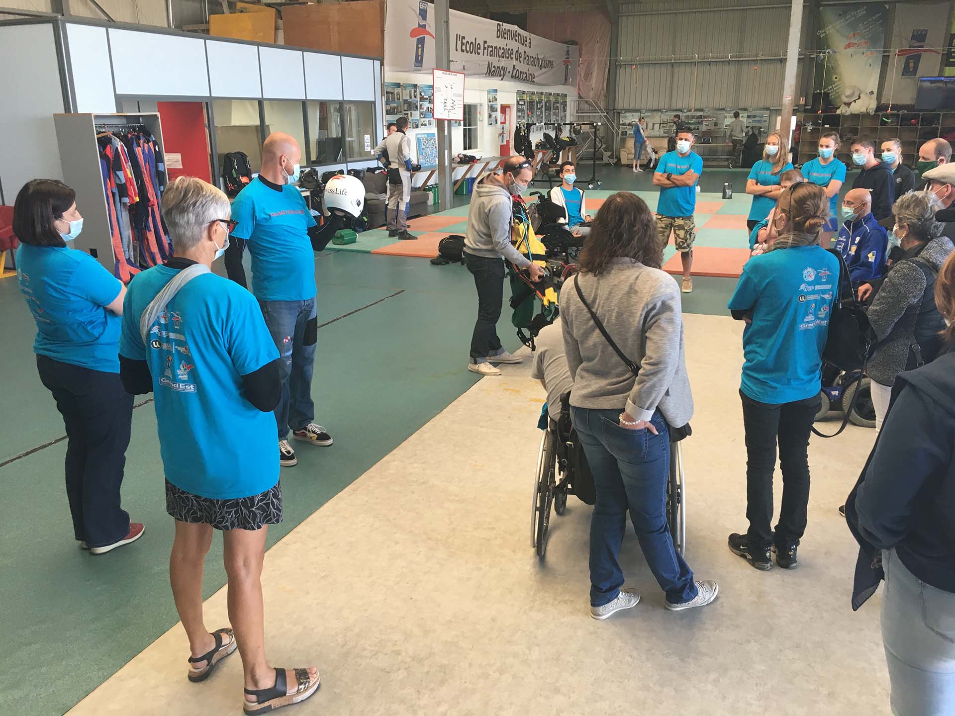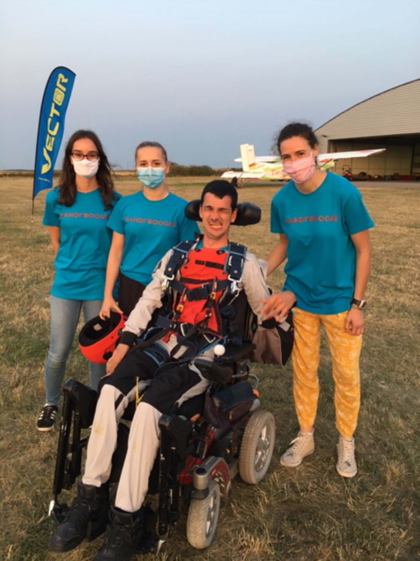 M.G. : C’est une petite association loi 1901, née en 2018. Le premier projet était d’acquérir deux combinaisons de saut « handi » avec système de relevage de jambes, pour compléter le matériel de l’entraîneur national des moniteurs de saut « handi ». Nous les mettons à disposition de cet entraîneur. Le 2nd était le Handi’Boogie du 12 septembre 2020. En 2021, d’autres sessions de saut et sans doute de soufflerie sont prévues.
