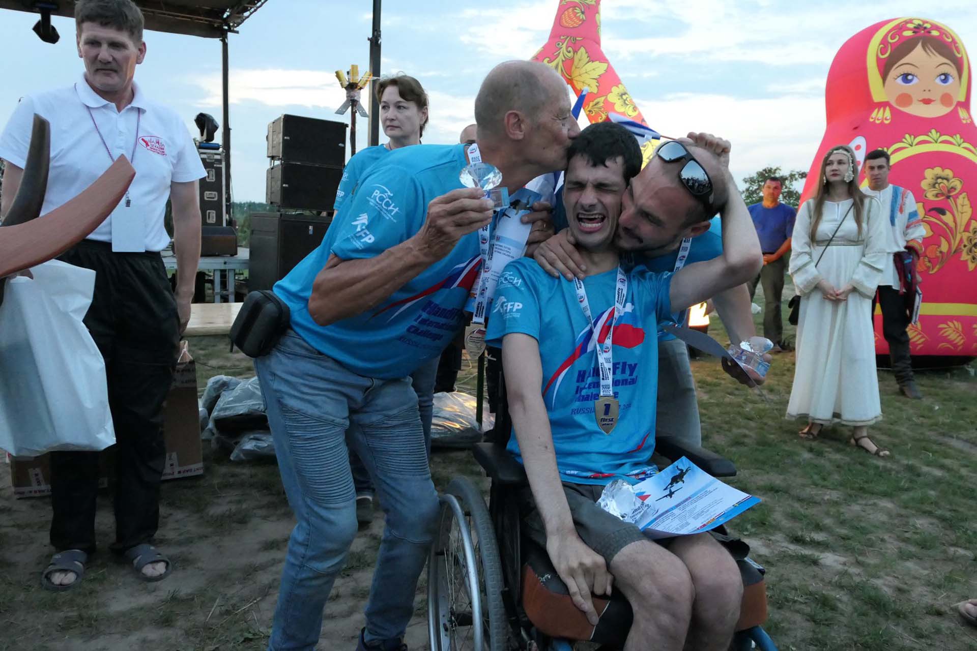 M.G. : C’est simple, la compétition Handifly est aujourd’hui axée sur la voltige en chute libre. C’est la partie notée, jugée. Le vol sous voile ensuite ne l’est pas, ni l’atterrissage à ce stade. J’espère que cela viendra un jour ! En compétition, on saute donc avec son porteur qui déclenche la chute de l’avion, contrôle le vol sous voile et assure l’atterrissage mais il reste absolument neutre pendant la chute libre.