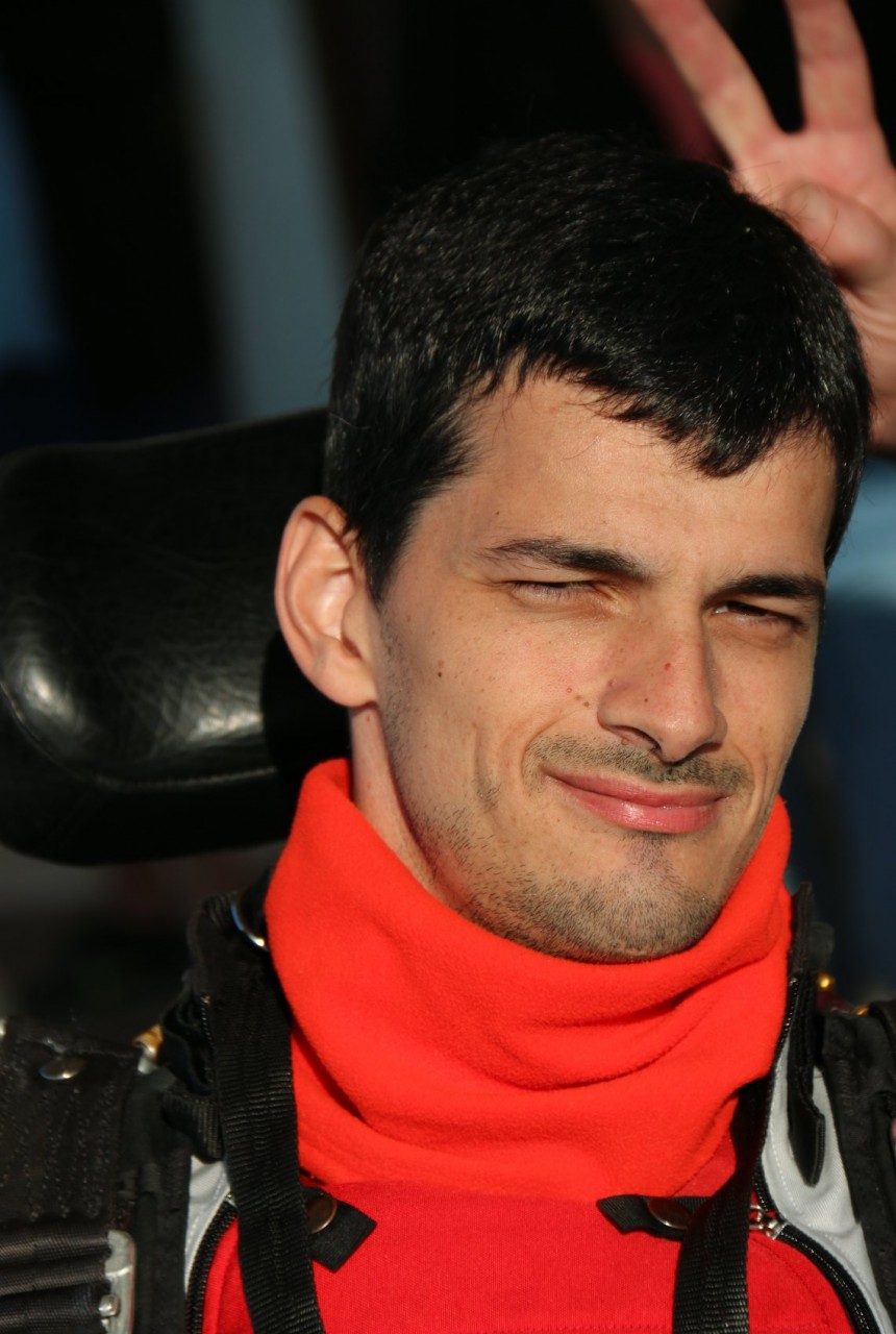 M.G. : Quand j’avais 15 ans, j’étais à l’EREA Toulouse Lautrec (un collège-lycée mixte avec 2/3 d’élèves handicapés et 1/3 d’élevés valides), des profs d’EPS m’ont proposé de faire un simple baptême de parachutisme. Ce n’est que 2 ans après que je me suis vraiment mis au parachutisme et à la compétition….