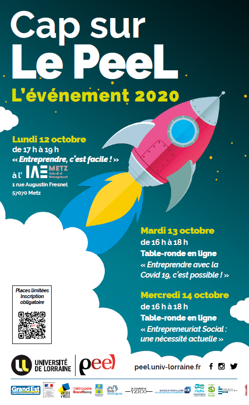 Dans le cadre des journées de l'entrepreneuriat au niveau national, le PeeL vous donne rendez-vous en présentiel ou en distanciel pour l'événement "Entreprendre c'est facile" le Lundi 12 octobre de 17h à 19h à l'IAE de METZ.