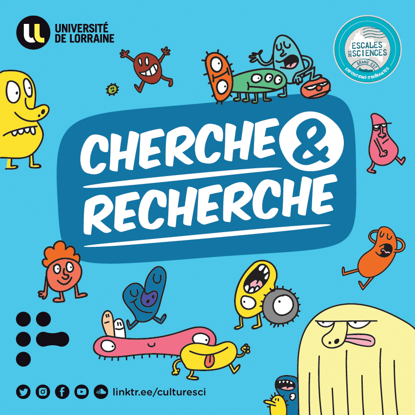 Cherche & Recherche est une exposition d’illustrations grand format mettant en scène la recherche sous la forme de petits personnages à identifier dans des décors surpeuplés. Champignons, mathématiques, psychologie, politique, médicaments... chaque planche a été commandée au dessinateur Triton Mosquito, et conçue en lien avec les chercheur.e.s de l’université.