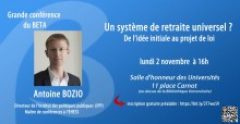Cette conférence va retracer le parcours du projet de système de retraite universel : l’émergence de la proposition dans les cercles académiques, sa traduction politique et le parcours de préparation de la réforme ayant abouti à un projet de loi décrié, dont l’adoption au Parlement a été interrompue par la crise de la covid-19. Après un retour sur le diagnostic sur le fonctionnement du système actuel, les arguments en faveur d’un système universel dit « par points » seront présentés. La conférence reviendra ensuite sur les choix réalisés dans le cadre du projet de loi, et des points de divergence éventuels avec la proposition initiale. Au fil de ce récit, l’intervenant présentera une réflexion sur la participation des universitaires au débat public.