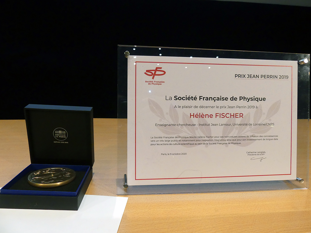 La Société française de physique a remis le 9 octobre 2020 le Prix Jean Perrin à Hélène Fischer. Physicienne, enseignante à la Faculté des sciences et technologies et chercheuse à l’Institut Jean Lamour (IJL), elle mène depuis de nombreuses années un important travail de vulgarisation scientifique. Il a culminé avec la conception de l’exposition Magnétique, présentée pendant un an au Palais de la découverte, à Paris.