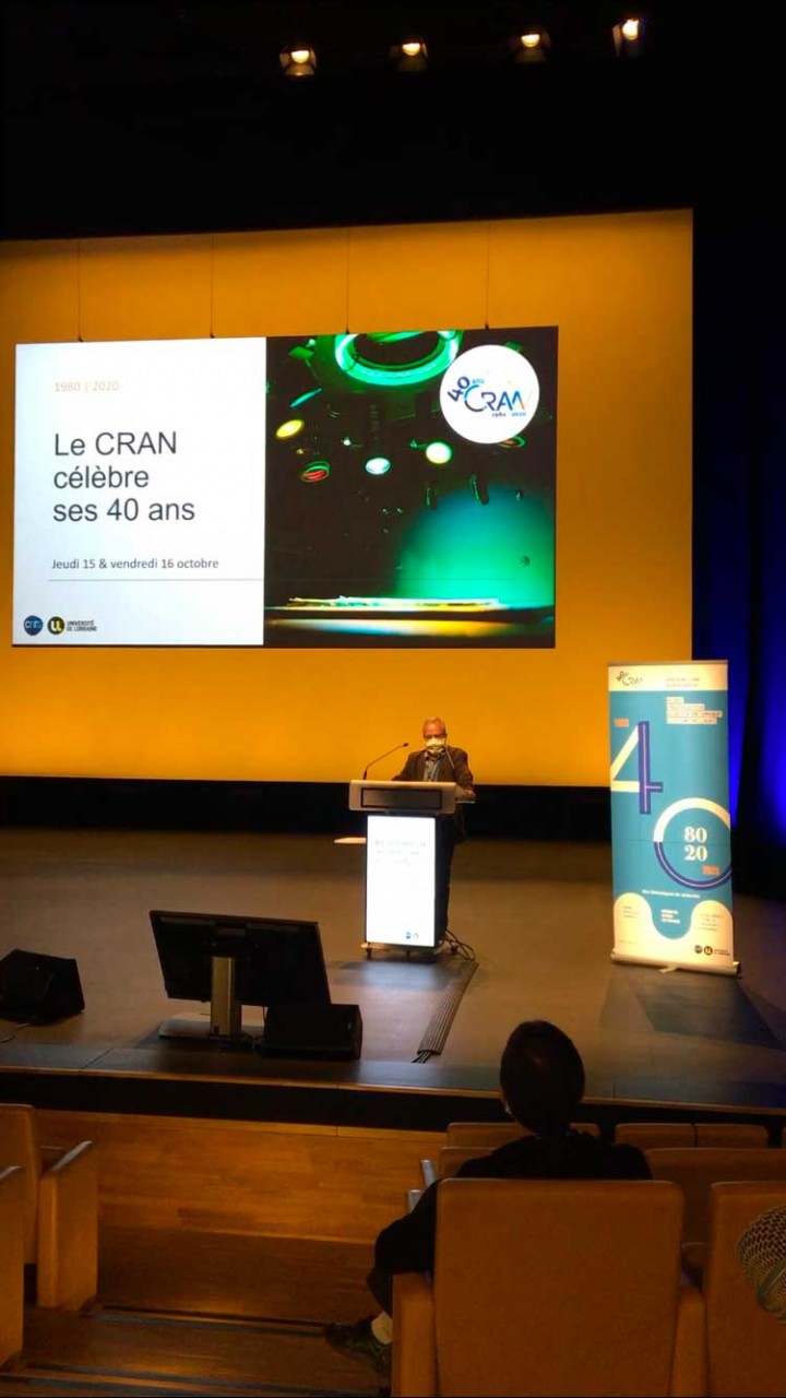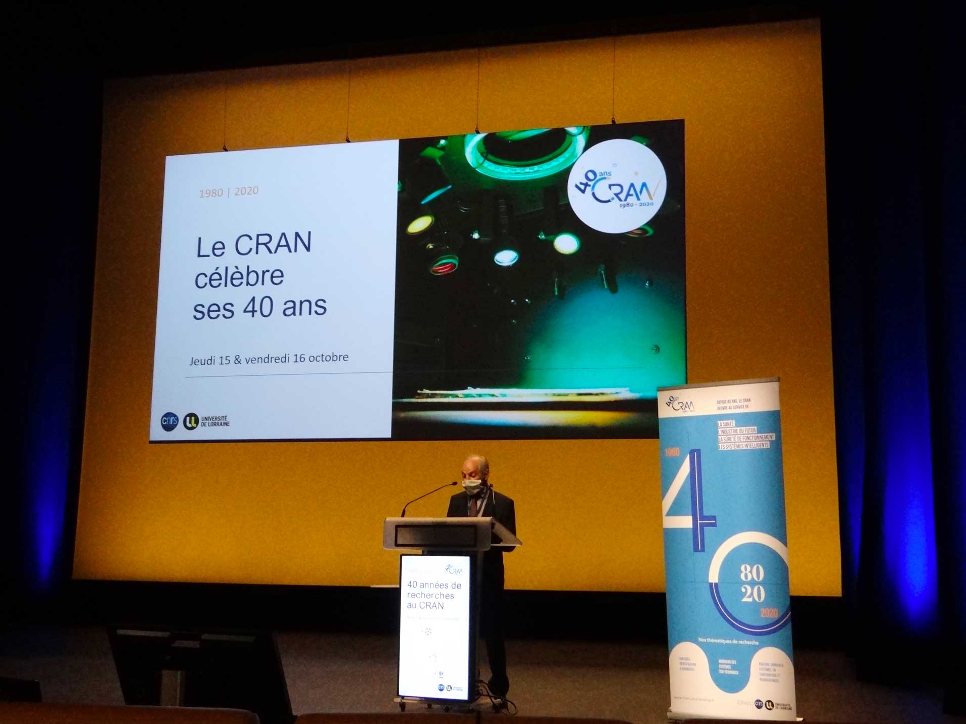 Les 15 & 16 octobre 2020 , le CRAN a célébré son 40ème anniversaire en présence notamment de Pierre Mutzenhardt, Président de l’Université de Lorraine, d’Ali Charara, directeur de l’Institut des Sciences de l’Information de leurs Interactions du CNRS, d’Edwige Helmer-Laurent, déléguée régionale Centre-Est CNRS et de François Werner, vice-président de la Métropole du Grand Nancy et du Conseil Régional du Grand Est en charge de la coordination des politiques européennes, enseignement supérieur et recherche. Malgré le contexte de crise sanitaire, 176 participants ont assisté à cet événement qui a rassemblé partenaires académiques, institutionnels et industriels, les tutelles et les membres du CRAN au Centre des Congrès Prouvé de Nancy. Ces journées se sont déroulées dans le plus strict respect des consignes sanitaires avec le port du masque.