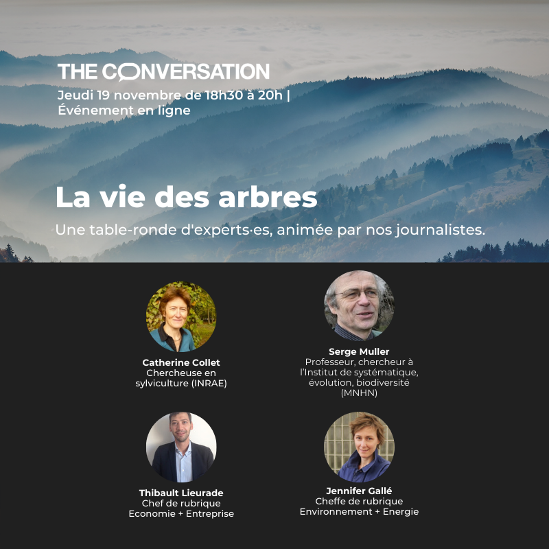 The Conversation fête son cinquième anniversaire cet automne ! Pour l’occasion, 5 événements-rencontres autour de 5 thèmes forts, mettant en lumière le travail de l'équipe de l'équipe de TCF ont été prévus. Si les événements-rencontres ont pu se faire en présentiel à Paris et Grenoble, le contexte sanitaire a transformé toutefois à transformer nos prochaines dates en événements 100% numériques, avec chaque jeudi une rencontre en ligne, en direct, faisant intervenir nos chercheurs et nos journalistes ! Catherine Collet, chercheuse au laboratoire SILVA (INRAE, AgroParisTech, Université de Lorraine) sera une des expertes lors de la rencontre autour de la vie des arbres. À vos agendas !