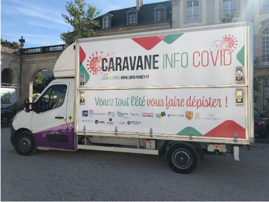 Du 29 juillet au 12 septembre 2020, le NomadLab de l’Ecole nationale supérieure en génie des systèmes et de l'innovation (ENSGSI) et de l’Équipe de recherche sur les processus innovatifs (ERPI) s’est vêtu de son habit de Caravane Covid pour accompagner le CHRU de Nancy dans sa mission de santé publique.