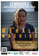 Le 3ème épisode de la série de séminaires intitulée « Genèse, illustration, traduction et prix littéraires autour de l’œuvre de Mohale Mashigo » organisée par IDEA a eu lieu en direct sur YouTube ce jeudi 26 novembre. Cette rencontre a été présidée par Marilyne Brun et a réuni Lorena Rizzo et Cédric Courtois. Ensemble, ils ont abordé la question de la représentation des femmes et la notion de traumatisme, qu’il soit collectif ou personnel, sur différents supports.